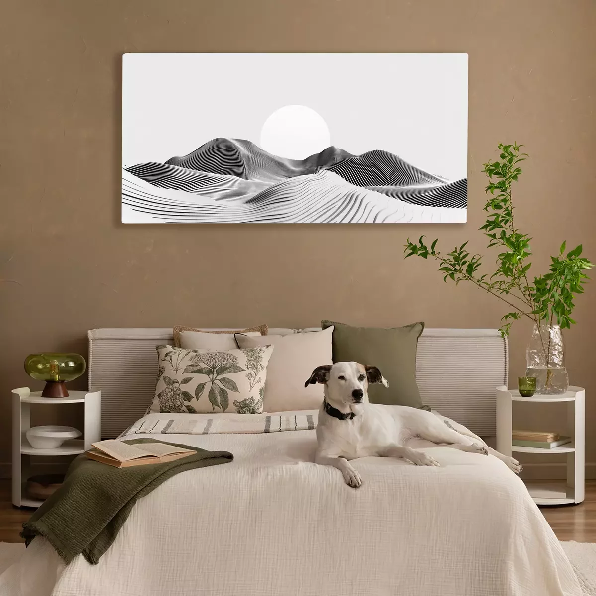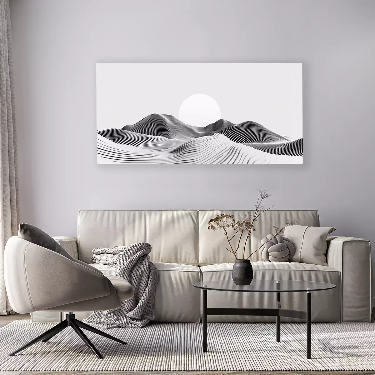 De print wordt aangebracht op hoogwaardig canvas dat op een schildersweefgetouw (spieraam) wordt gespannen. Omdat de print de zijranden bedekt, hoeft het ontwerp niet met een extra kader te worden omlijst. Wij raden ook composities aan die uit meerdere foto's bestaan en zo een coherente compositie vormen.