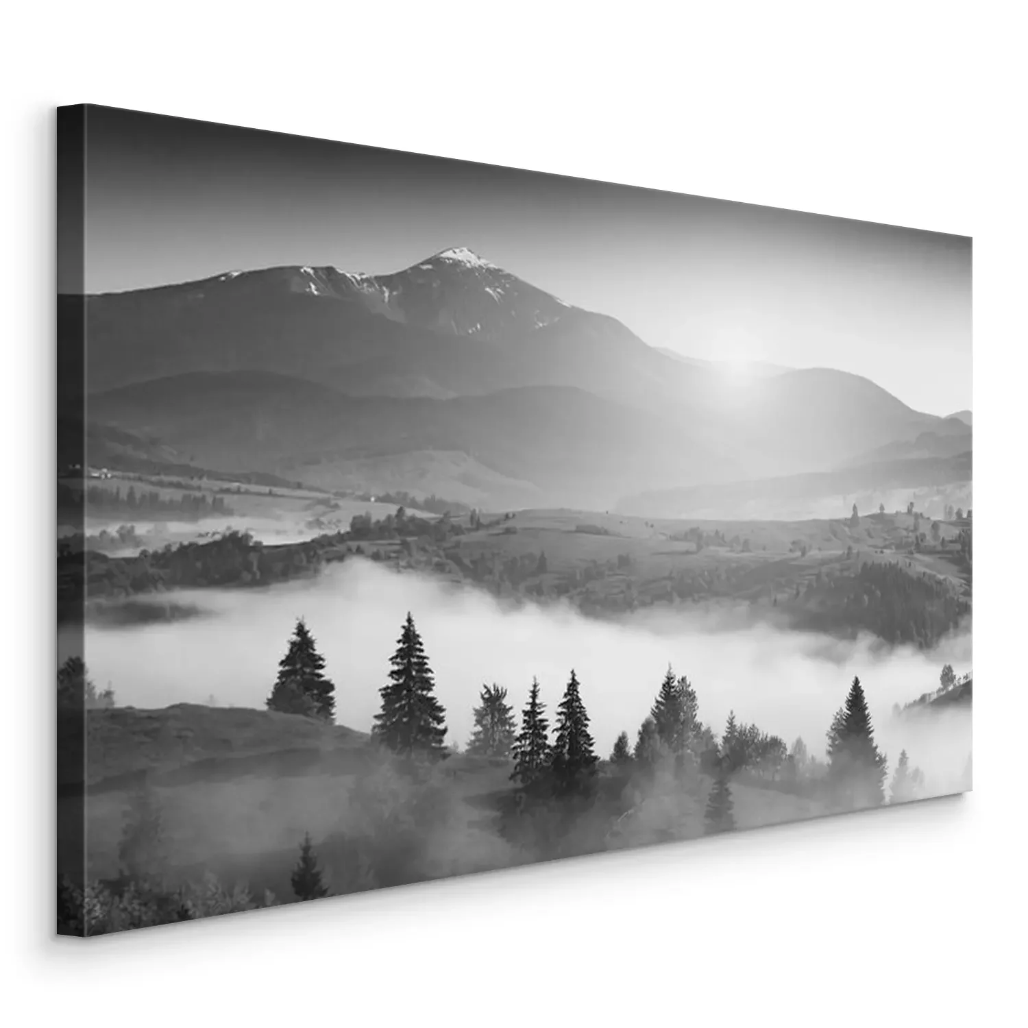 Canvas Zwart wit landschap met bergen