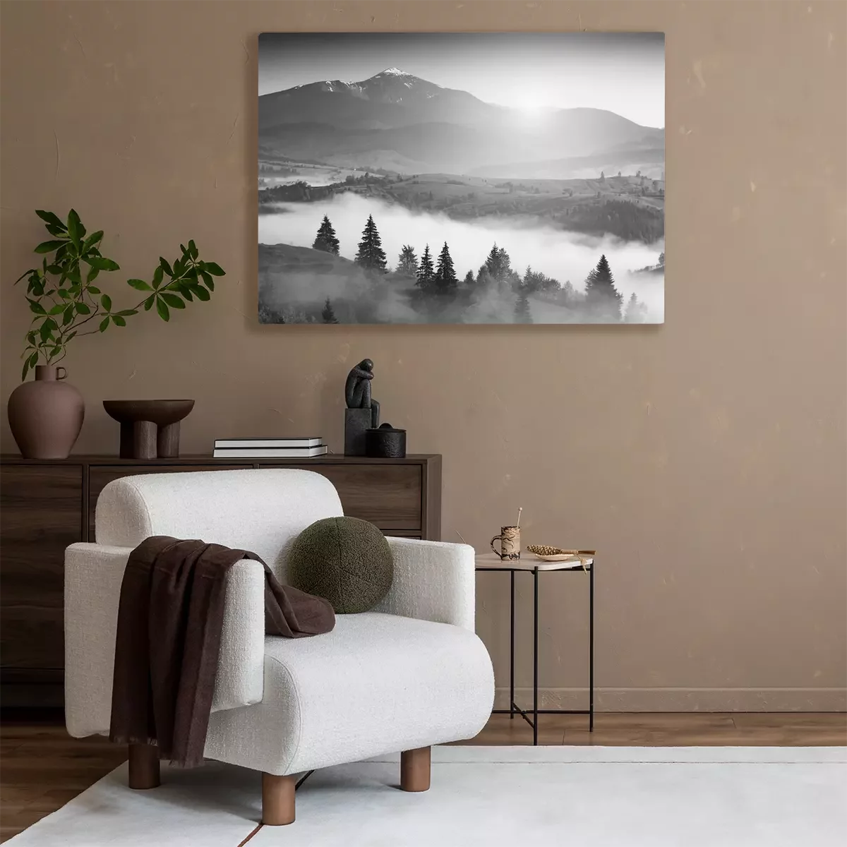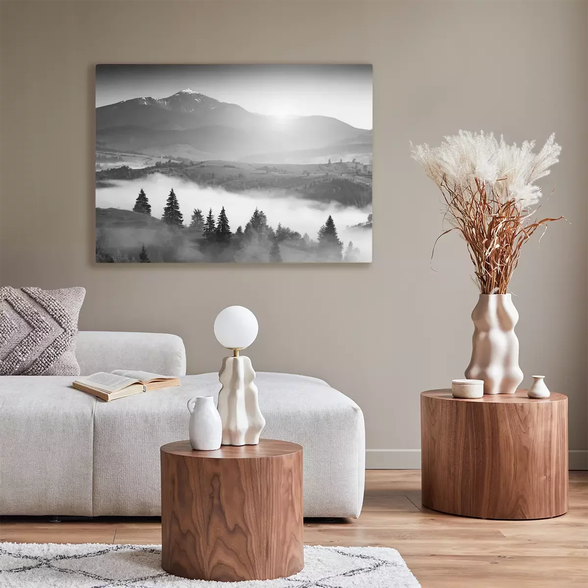 Canvas: Zwart wit landschap met bergen