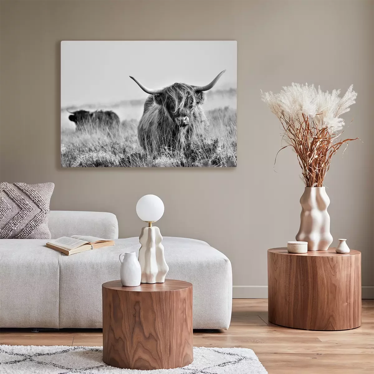 De print wordt aangebracht op hoogwaardig canvas dat op een schildersweefgetouw (spieraam) wordt gespannen. Omdat de print de zijranden bedekt, hoeft het ontwerp niet met een extra kader te worden omlijst. Wij raden ook composities aan die uit meerdere foto's bestaan en zo een coherente compositie vormen.
