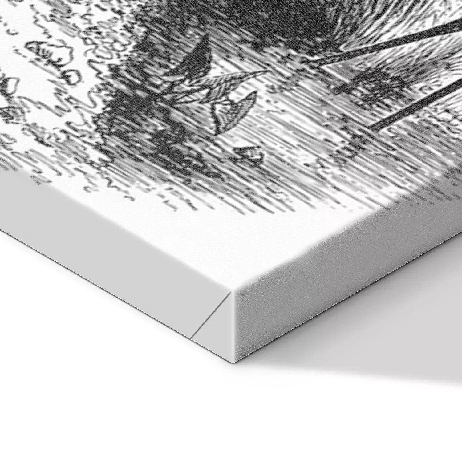 De print wordt aangebracht op hoogwaardig canvas dat op een schildersweefgetouw (spieraam) wordt gespannen. Omdat de print de zijranden bedekt, hoeft het ontwerp niet met een extra kader te worden omlijst. Wij raden ook composities aan die uit meerdere foto's bestaan en zo een coherente compositie vormen.
