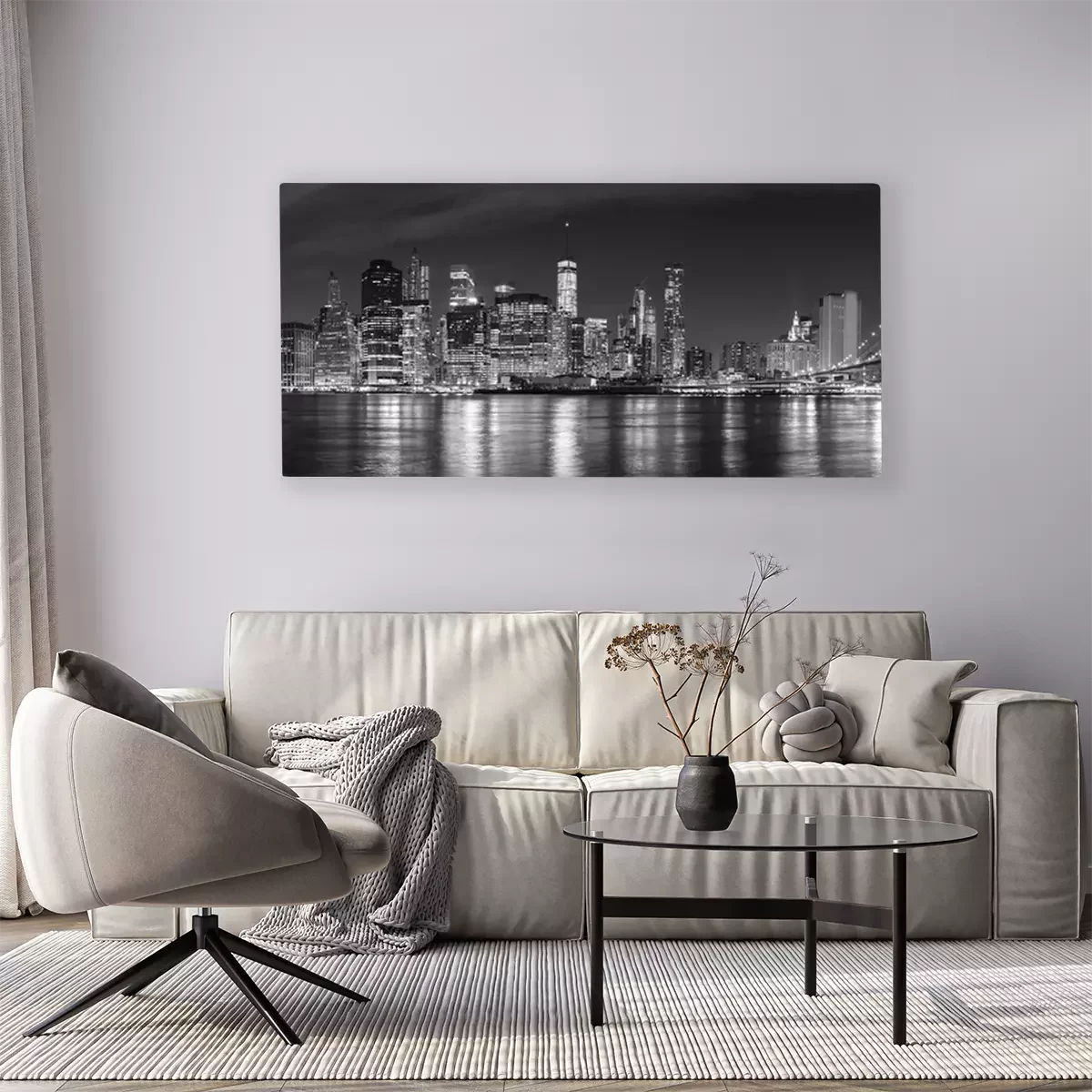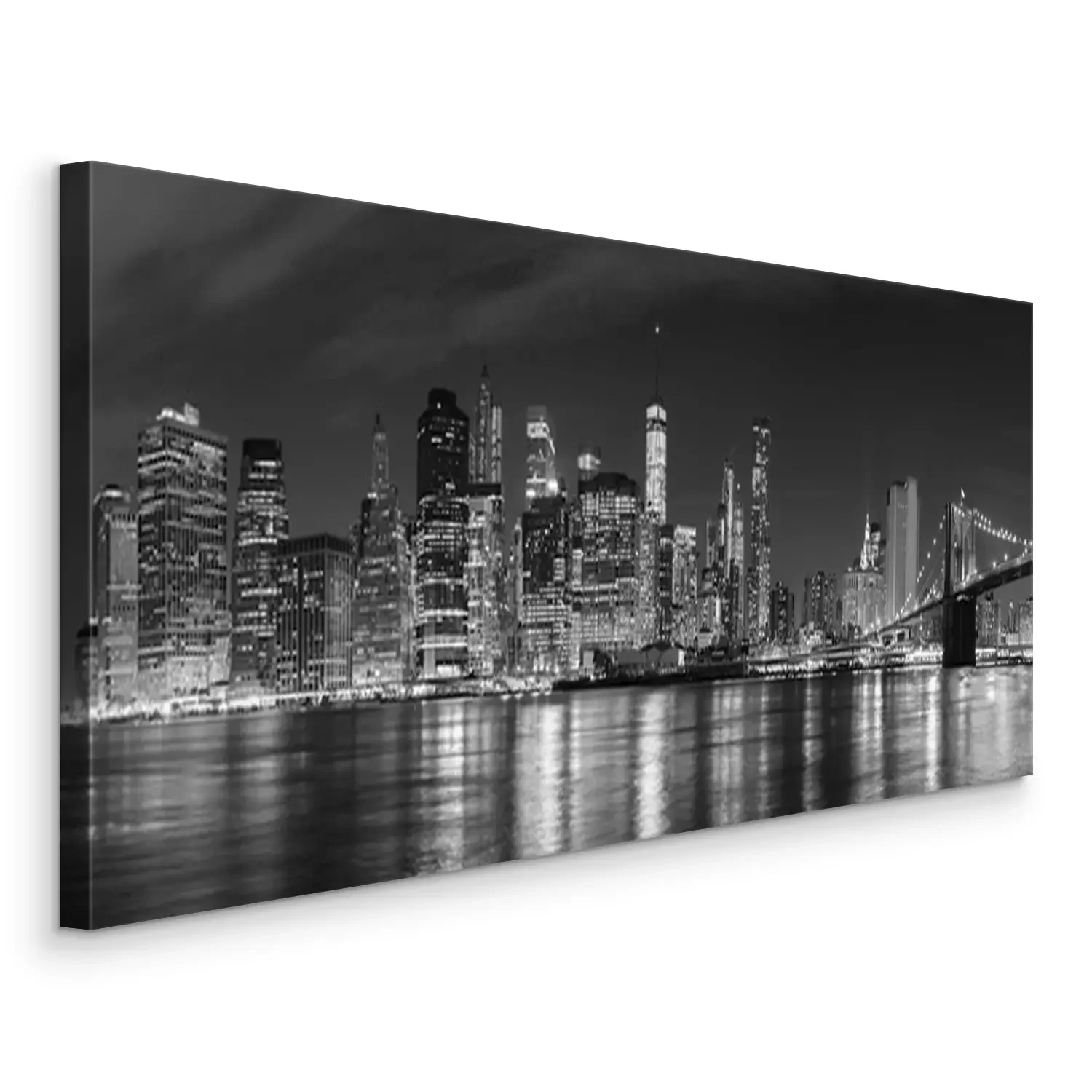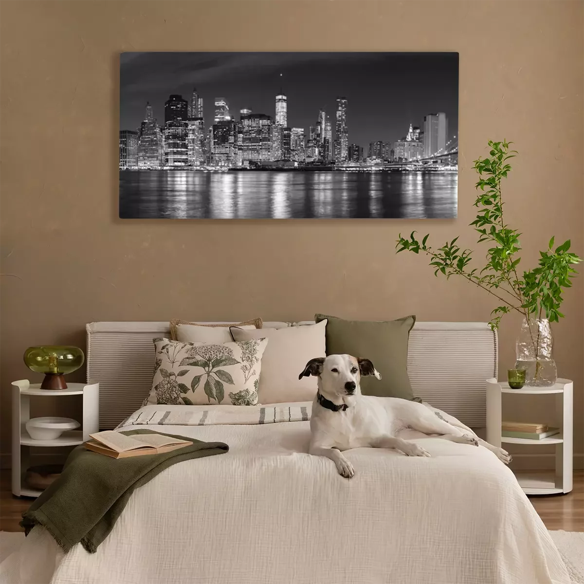 Canvas Zwart-wit New York City 's nachts panoramisch beeld, USA.