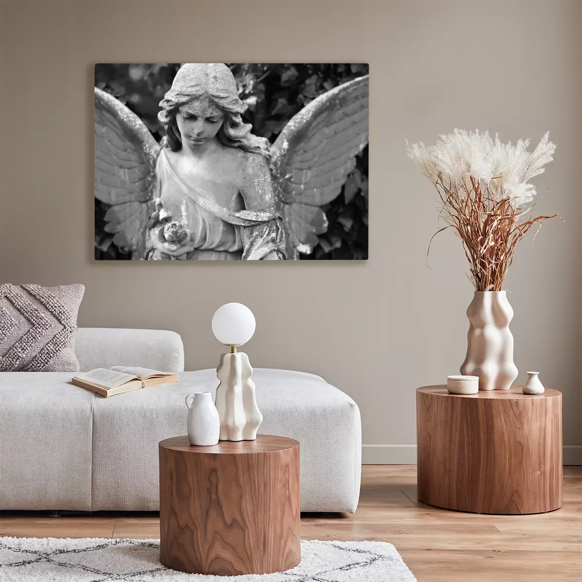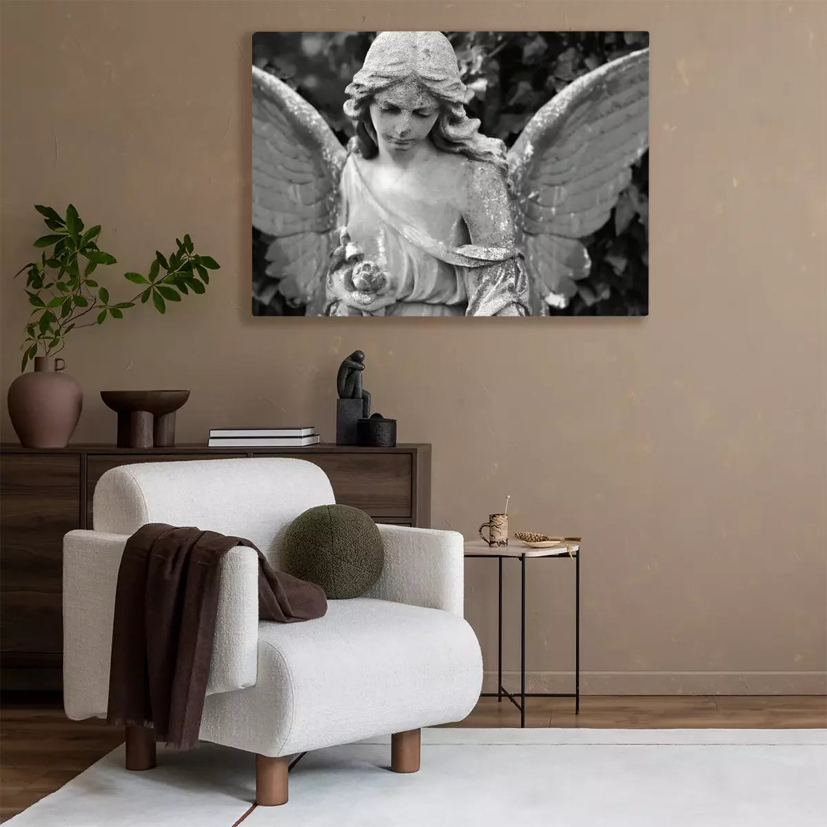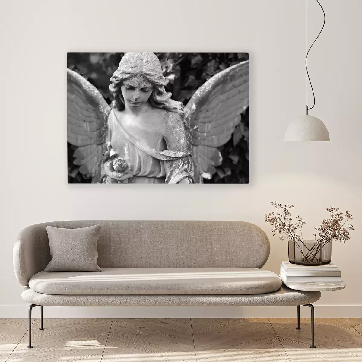 Canvas: Zwart-wit ontwerp van een beschermengel