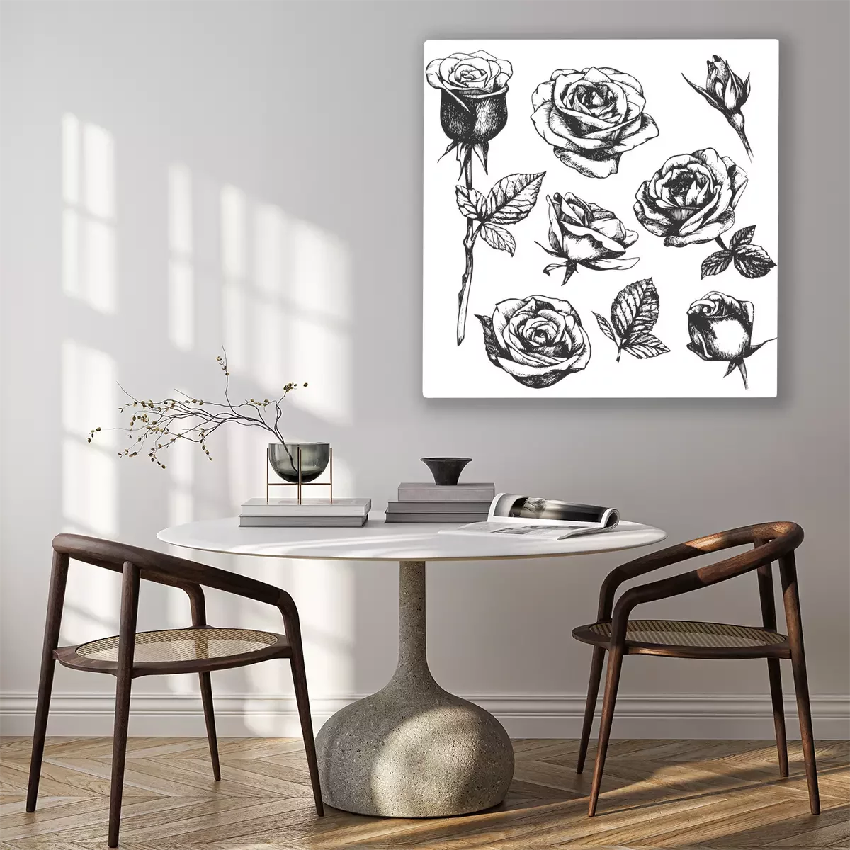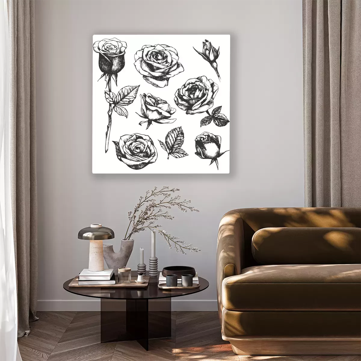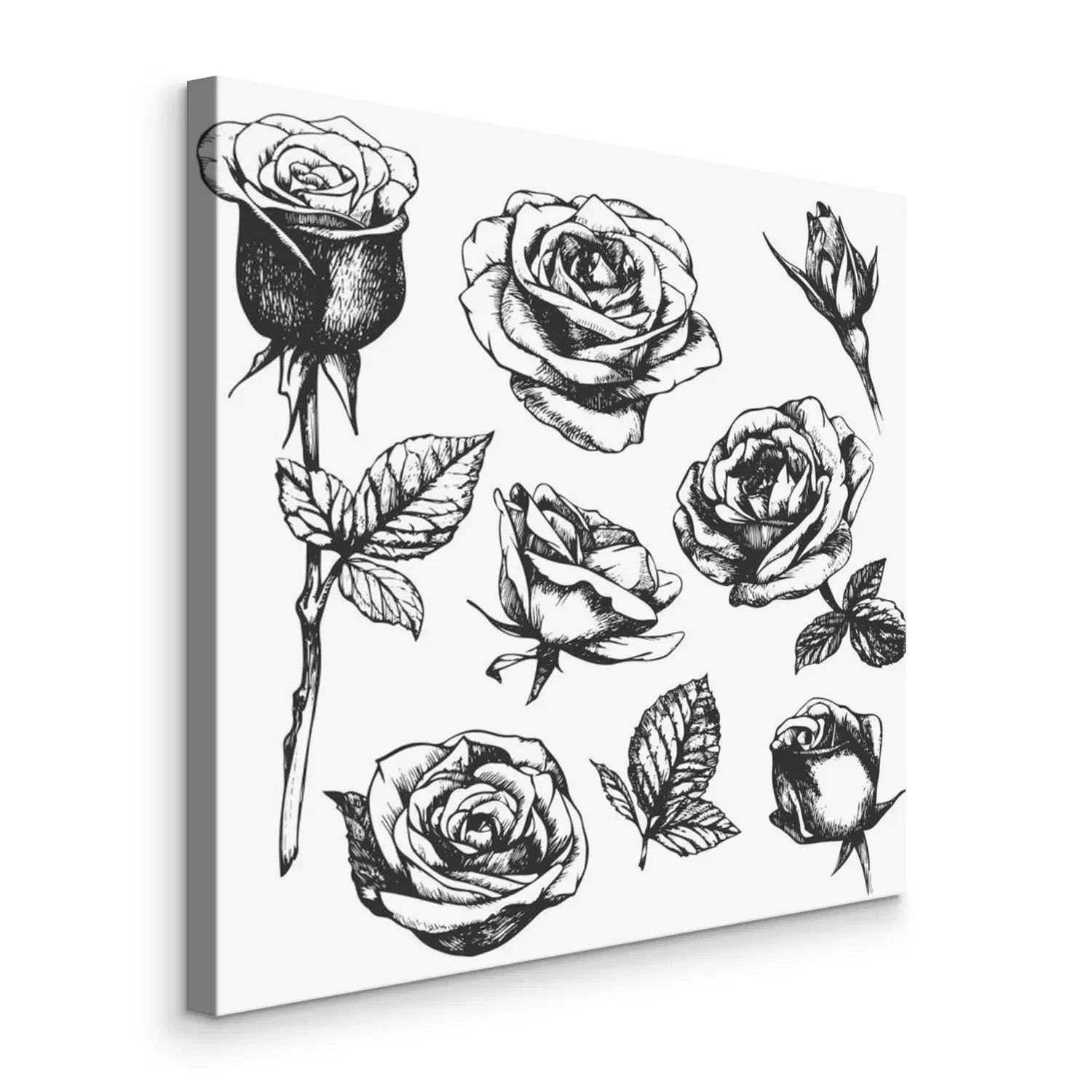 Canvas: Zwart-wit schets met rozen