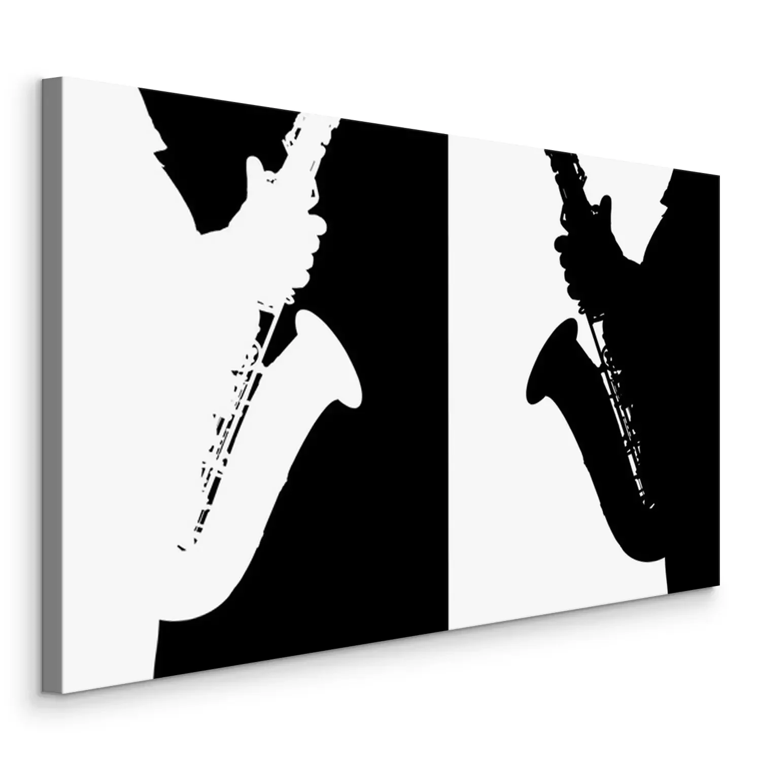 Canvas: Zwart-wit silhouet van de saxofoon.