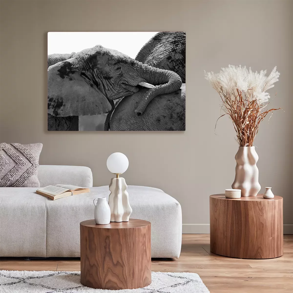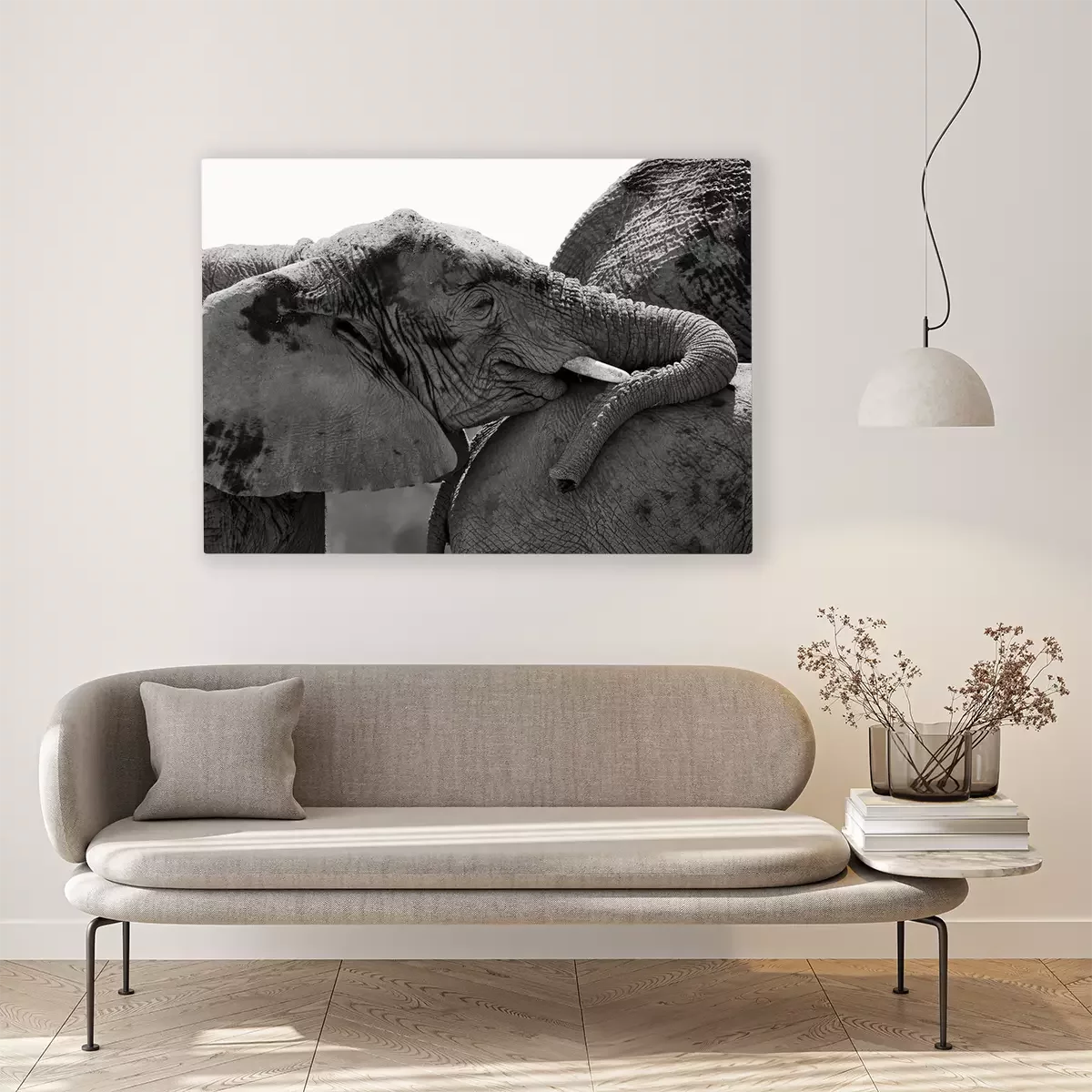 De print wordt aangebracht op hoogwaardig canvas dat op een schildersweefgetouw (spieraam) wordt gespannen. Omdat de print de zijranden bedekt, hoeft het ontwerp niet met een extra kader te worden omlijst. Wij raden ook composities aan die uit meerdere foto's bestaan en zo een coherente compositie vormen.