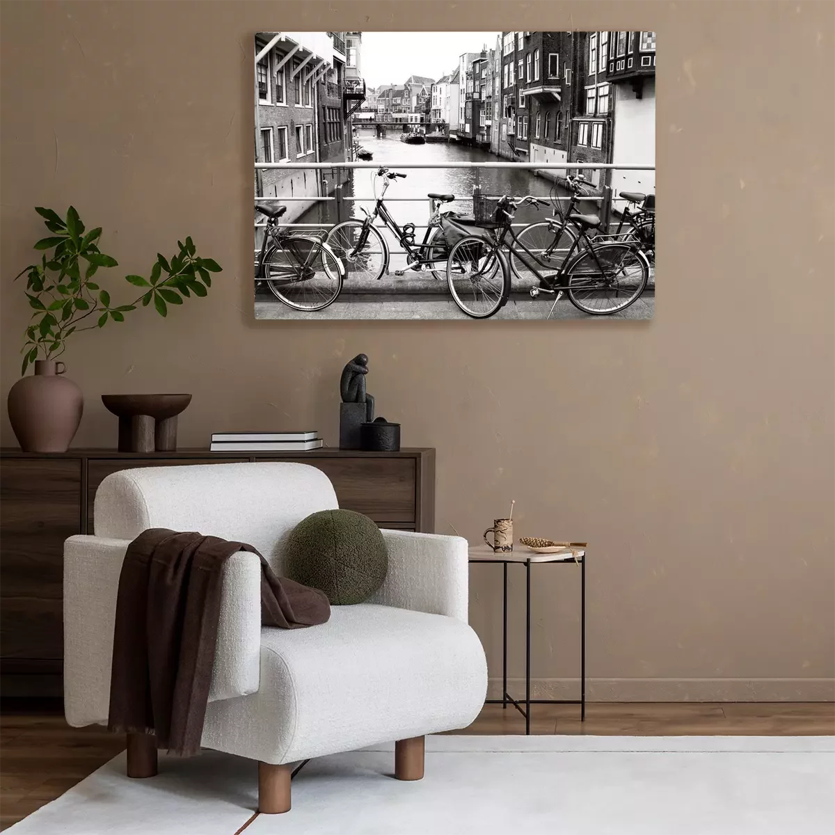 De print wordt aangebracht op hoogwaardig canvas dat op een schildersweefgetouw (spieraam) wordt gespannen. Omdat de print de zijranden bedekt, hoeft het ontwerp niet met een extra kader te worden omlijst. Wij raden ook composities aan die uit meerdere foto's bestaan en zo een coherente compositie vormen.