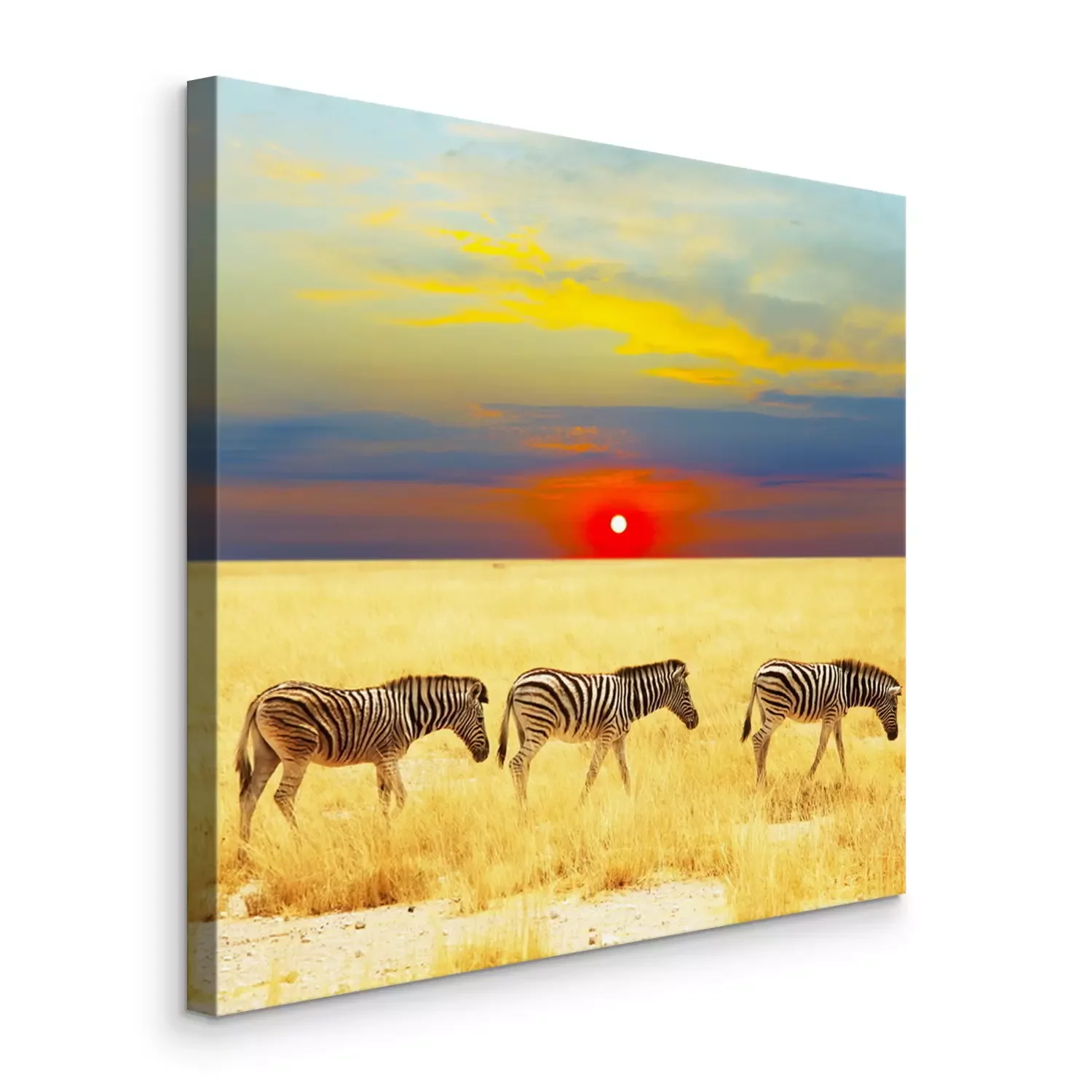 Canvas Zwart-witte dieren en zonsondergang