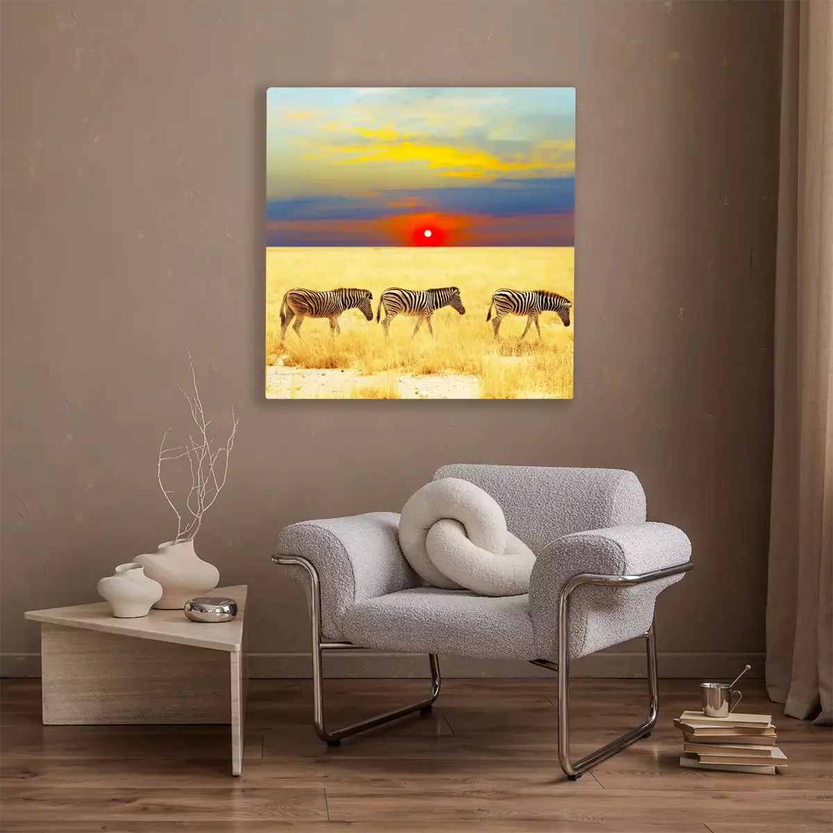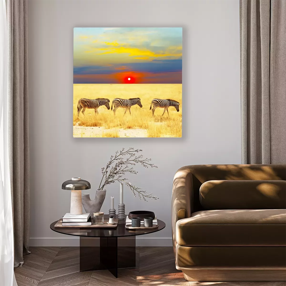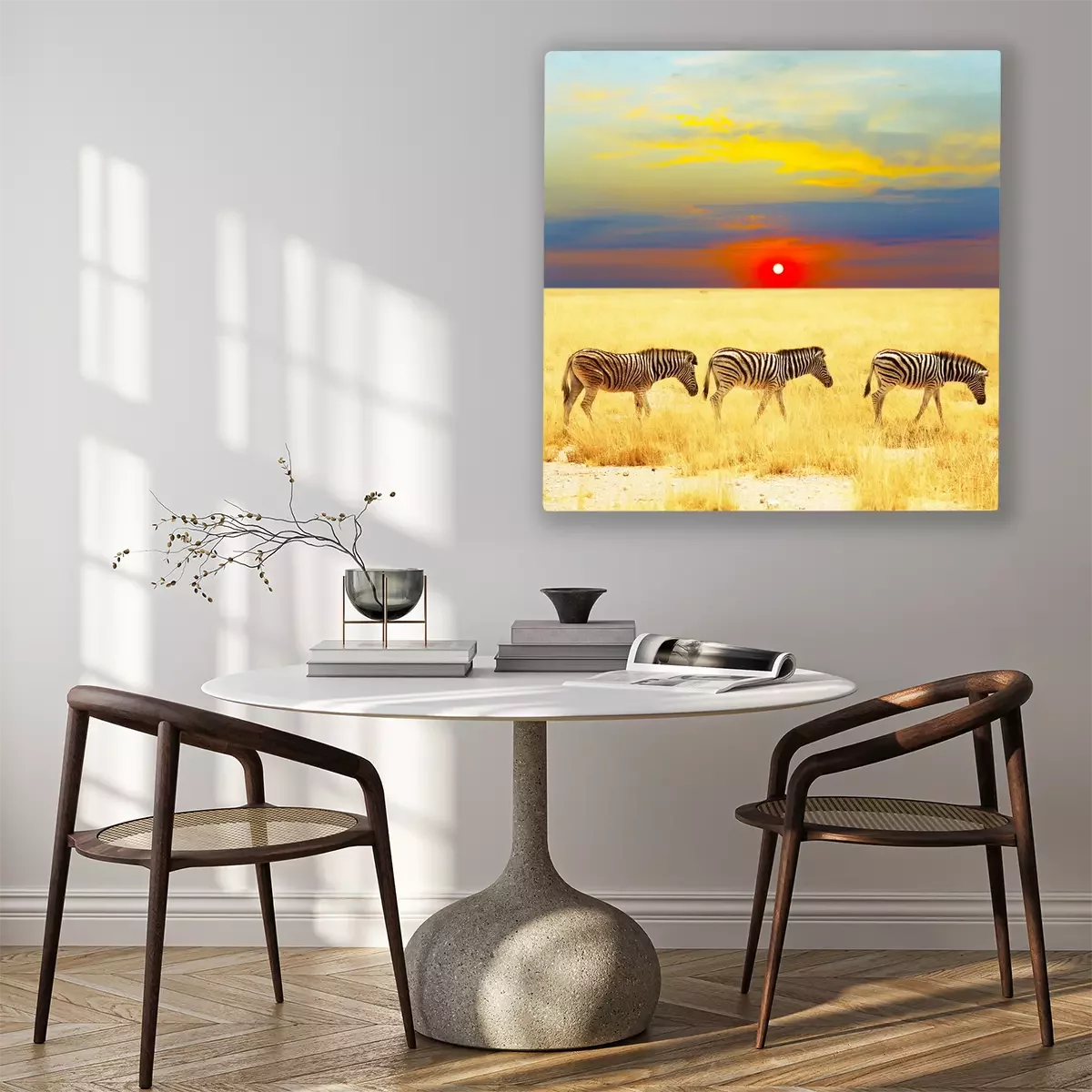 Canvas: Zwart-witte dieren en zonsondergang