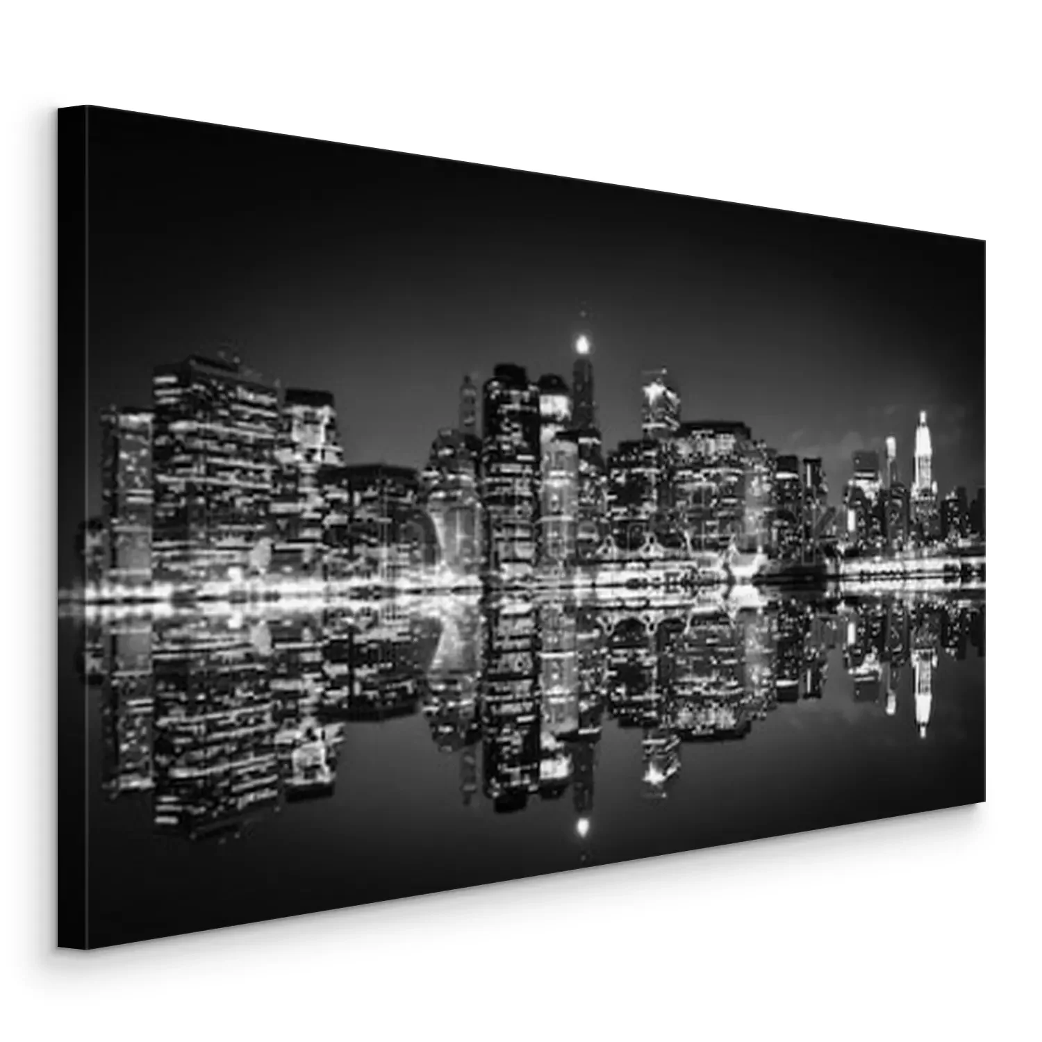 Canvas: Zwart-witte wolkenkrabbers van New York bij nacht