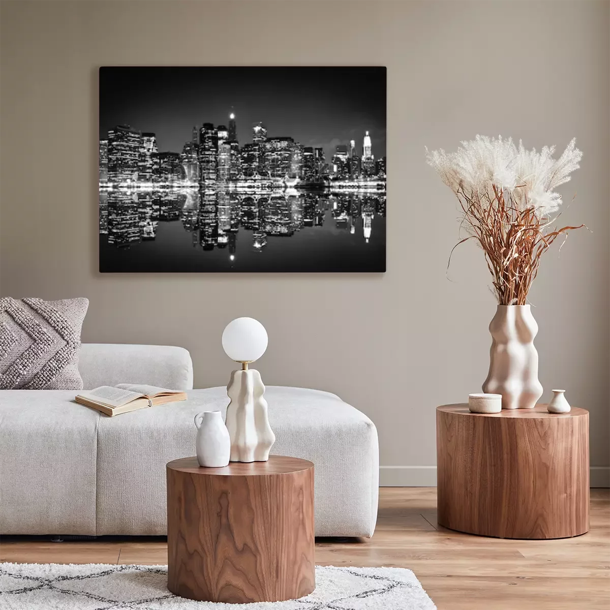 Canvas Zwart-witte wolkenkrabbers van New York bij nacht