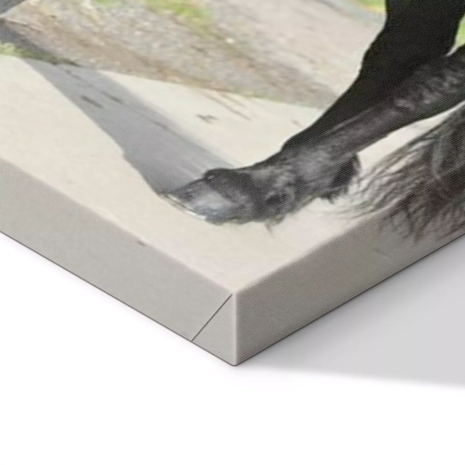 De print wordt aangebracht op hoogwaardig canvas dat op een schildersweefgetouw (spieraam) wordt gespannen. Omdat de print de zijranden bedekt, hoeft het ontwerp niet met een extra kader te worden omlijst. Wij raden ook composities aan die uit meerdere foto's bestaan en zo een coherente compositie vormen.