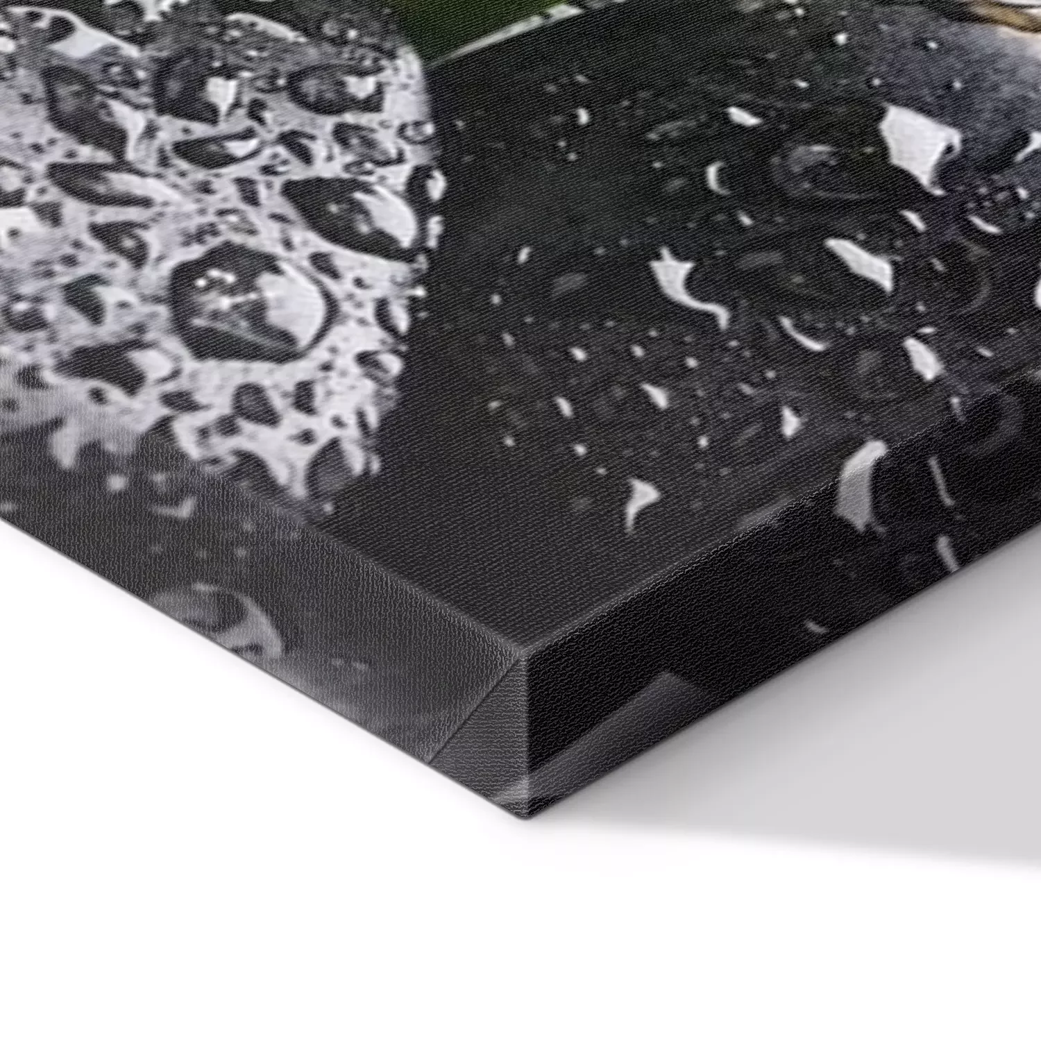 De print wordt aangebracht op hoogwaardig canvas dat op een schildersweefgetouw (spieraam) wordt gespannen. Omdat de print de zijranden bedekt, hoeft het ontwerp niet met een extra kader te worden omlijst. Wij raden ook composities aan die uit meerdere foto's bestaan en zo een coherente compositie vormen.