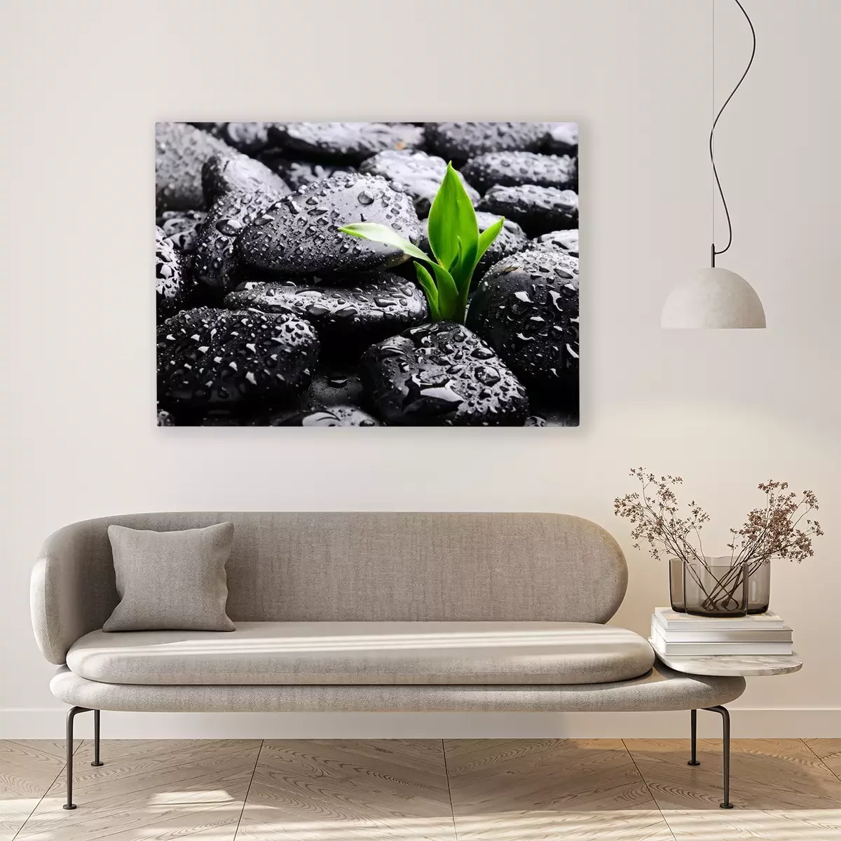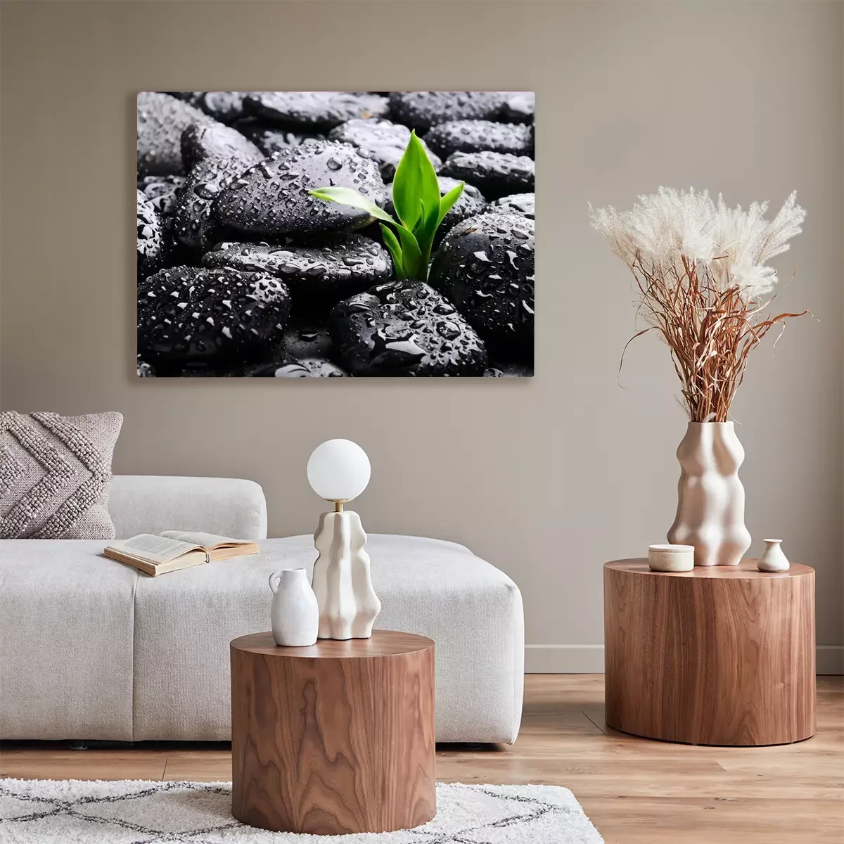 Canvas: Zwarte stenen en waterdruppels