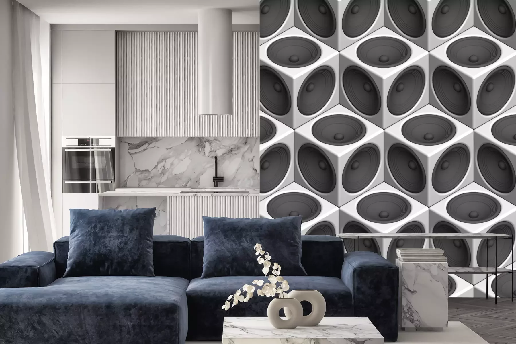 Het materiaal Premium+ is een gestructureerd vinyl op vlies met een gewicht van 255 g/m², dat kleine oneffenheden in de muur effectief camoufleert. De subtiele structuur van fijn zand geeft het oppervlak een exclusieve uitstraling, terwijl de halfmatte afwerking de diepte van de kleuren benadrukt. Het materiaal is dampdoorlatend, waardoor het ook in de keuken en badkamer kan worden gebruikt. De maximale breedte van één baan bedraagt 100 cm – bij grotere afmetingen wordt het fotobehang in meerdere gelijke banen verdeeld. De lijm wordt direct op de muur aangebracht en het behang wordt rand-aan-rand geplakt, wat zorgt voor een esthetisch resultaat zonder zichtbare naden. Het oppervlak kan gemakkelijk worden schoongemaakt door het voorzichtig af te nemen met een vochtige doek.