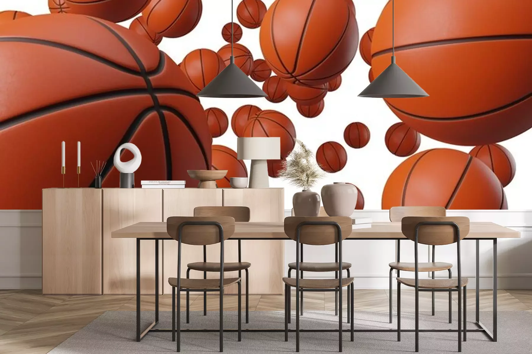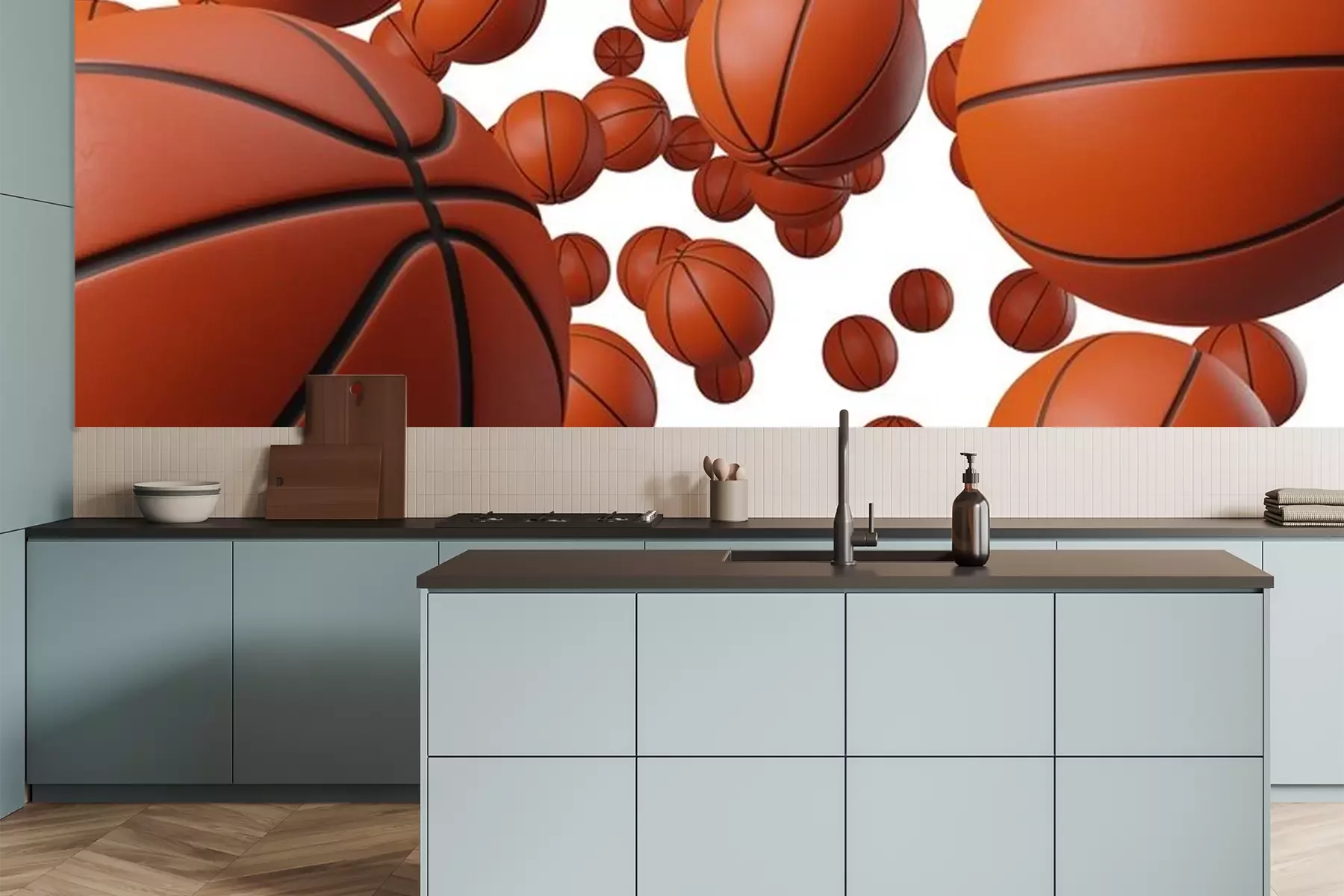 Fotobehang 3D basketballen op witte achtergrond