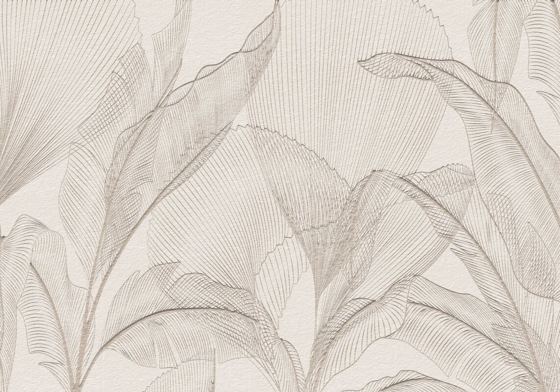 Fotobehang: 3D-bladeren op een beige achtergrond