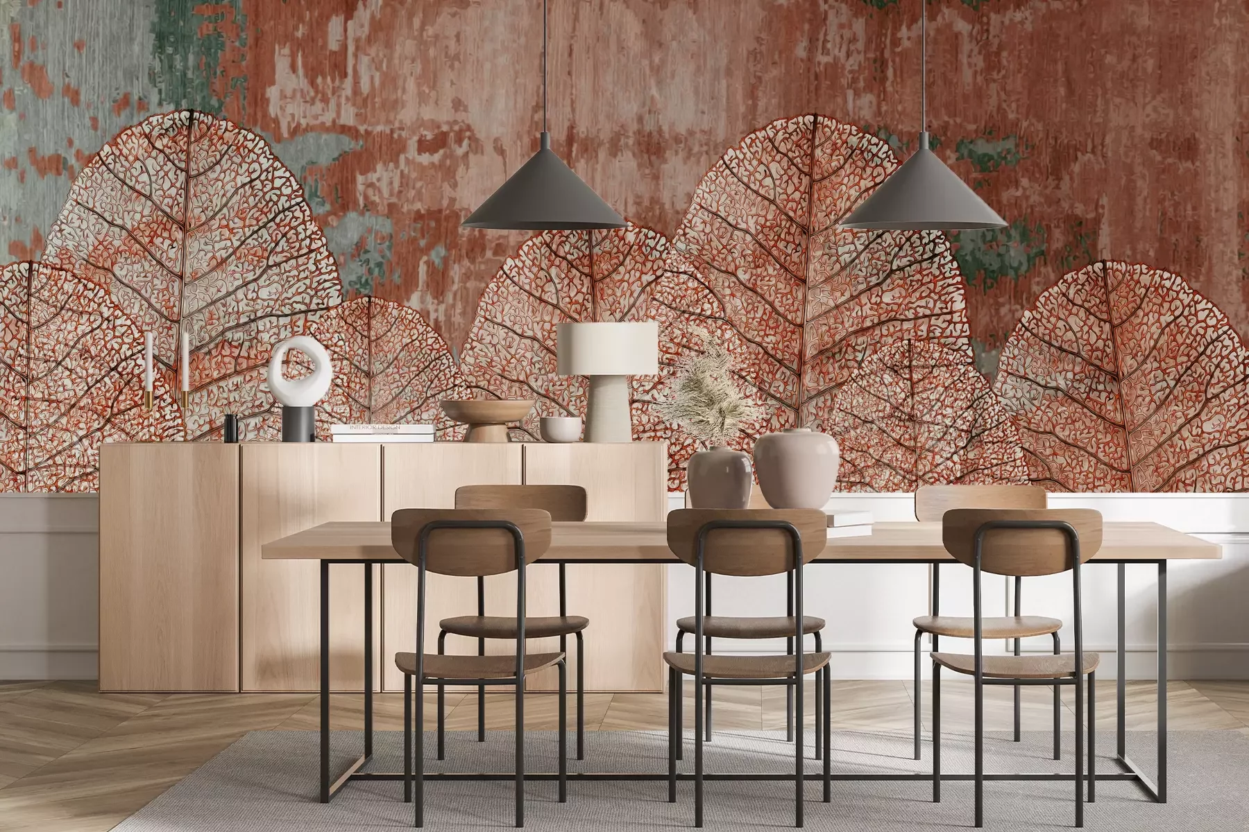 Het materiaal Standard is een hoogwaardig latexmateriaal met een glad, mat oppervlak. Dankzij de HP Latex-printtechnologie zijn de kleuren intens, duurzaam en UV-bestendig, waardoor het patroon jarenlang een onberispelijke uitstraling behoudt. Vervuilde oppervlakken kunnen voorzichtig worden afgeveegd met een droge doek. De maximale breedte van één baan bedraagt 95 cm of 105 cm – afhankelijk van de bestelde fotobehangbreedte. Bij grotere afmetingen wordt het patroon verdeeld over meerdere gelijkmatige banen. Het fotobehang wordt rand-aan-randaangebracht, wat vrijwel onzichtbare naden mogelijk maakt.