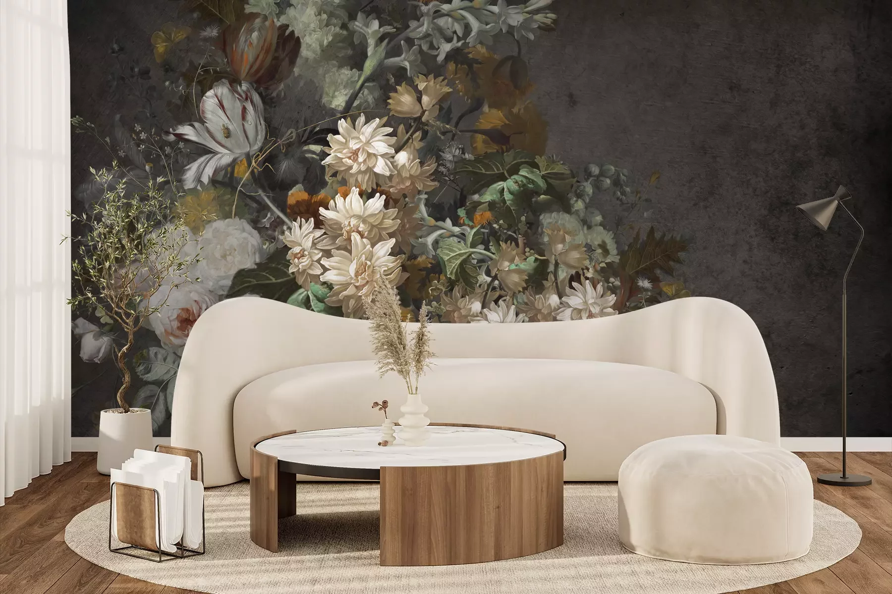 3d-bloemenboeket op een donkere achtergrond, bloemmotief