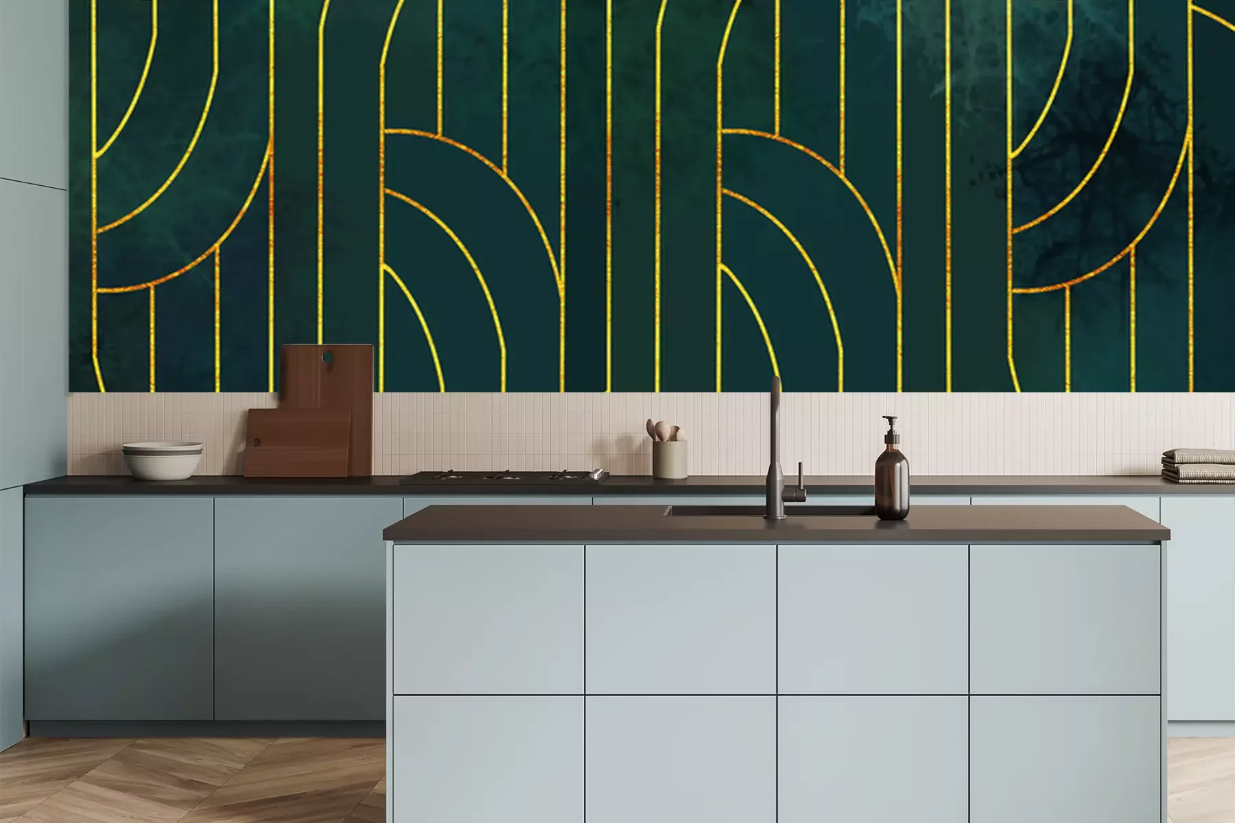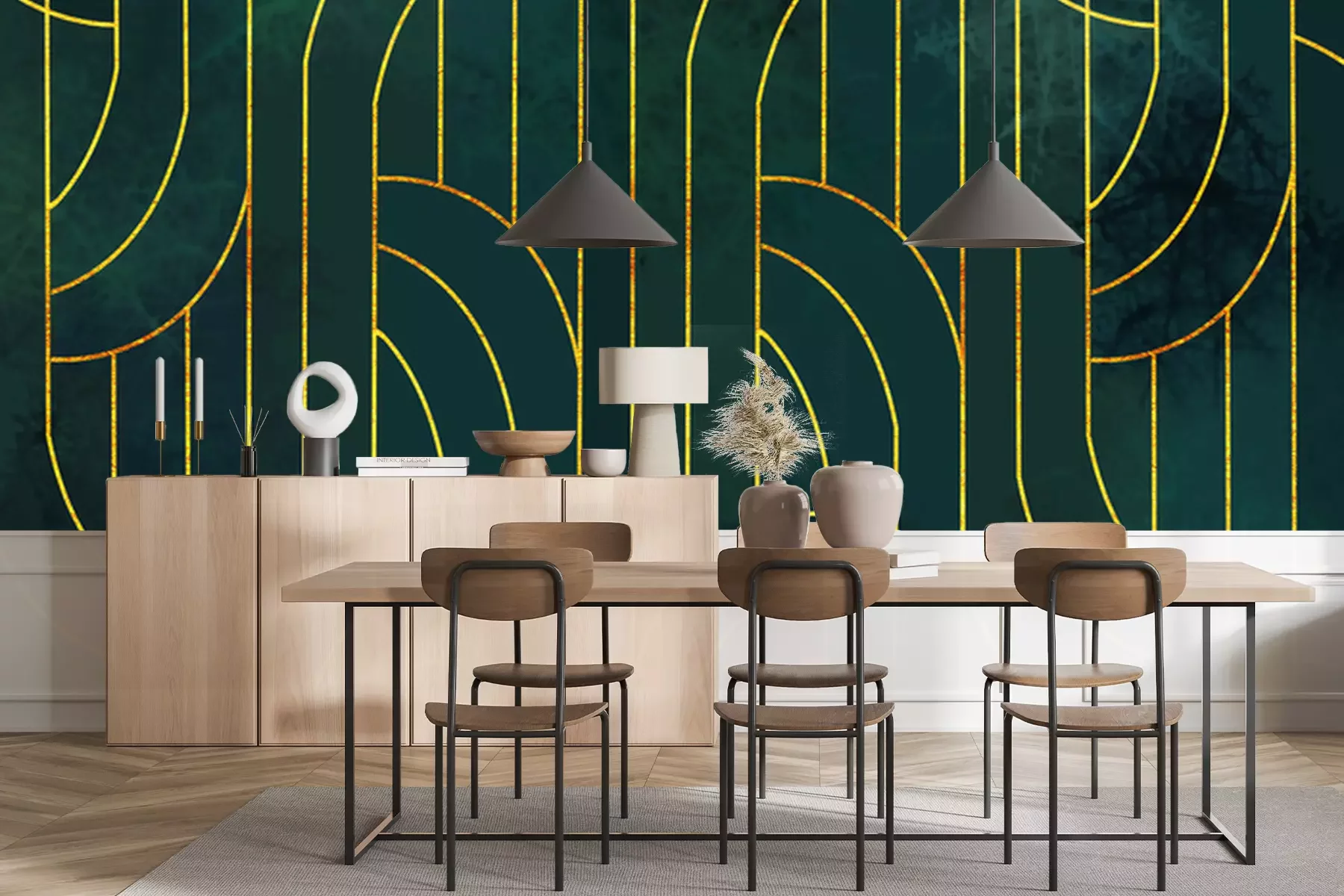 Fotobehang 3D gele lijnen op een donkere achtergrond in groentinten