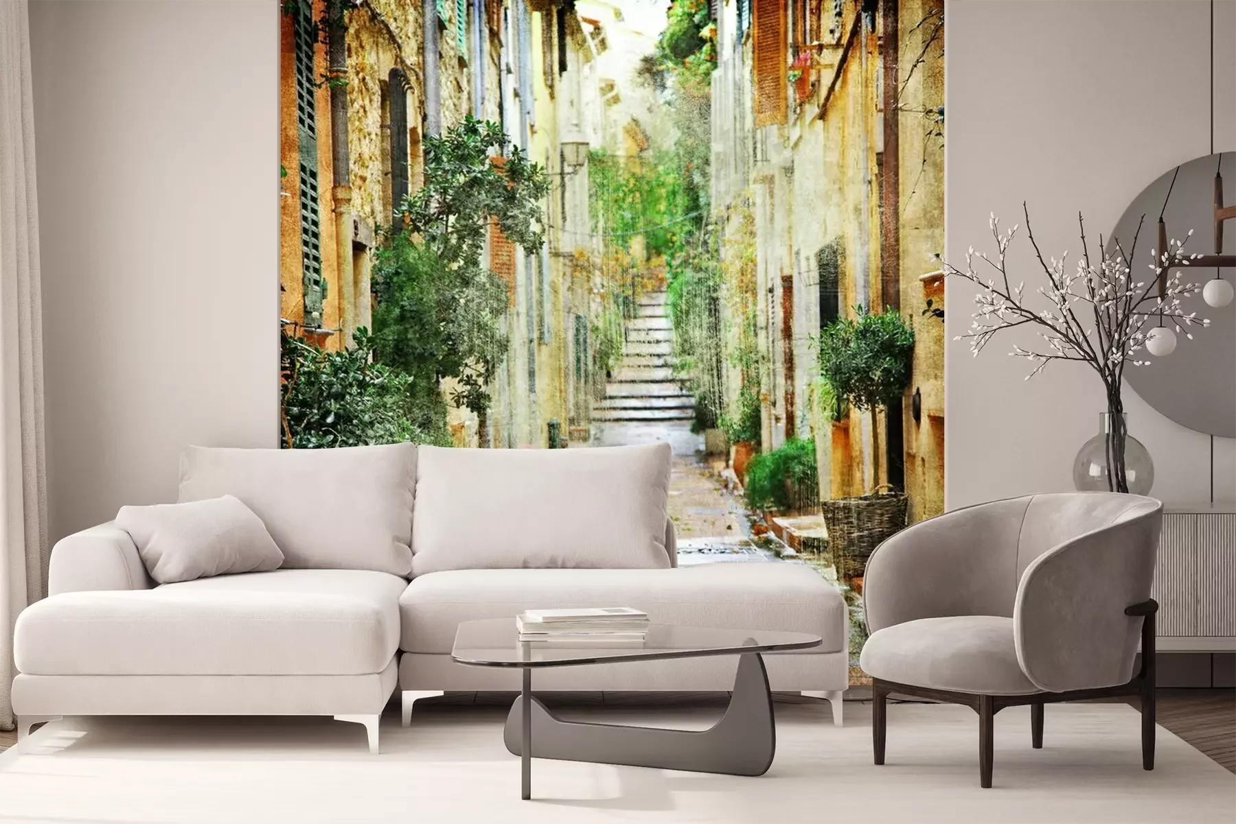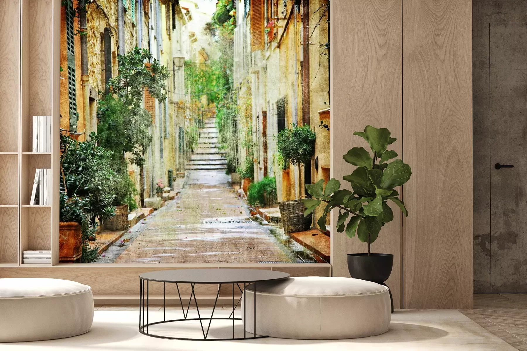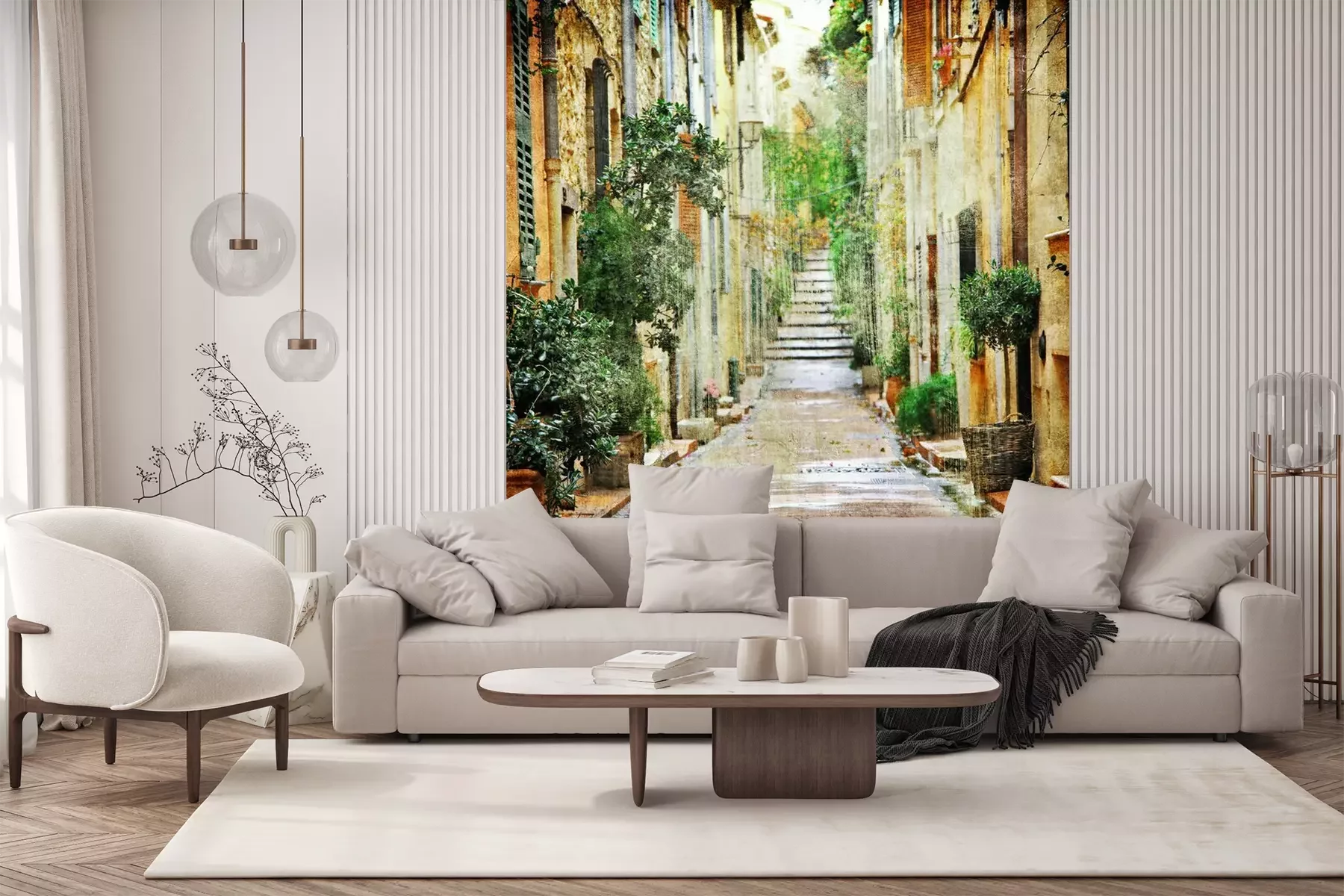 Het materiaal Premium+ is een gestructureerd vinyl op vlies met een gewicht van 255 g/m², dat kleine oneffenheden in de muur effectief camoufleert. De subtiele structuur van fijn zand geeft het oppervlak een exclusieve uitstraling, terwijl de halfmatte afwerking de diepte van de kleuren benadrukt. Het materiaal is dampdoorlatend, waardoor het ook in de keuken en badkamer kan worden gebruikt. De maximale breedte van één baan bedraagt 100 cm – bij grotere afmetingen wordt het fotobehang in meerdere gelijke banen verdeeld. De lijm wordt direct op de muur aangebracht en het behang wordt rand-aan-rand geplakt, wat zorgt voor een esthetisch resultaat zonder zichtbare naden. Het oppervlak kan gemakkelijk worden schoongemaakt door het voorzichtig af te nemen met een vochtige doek.