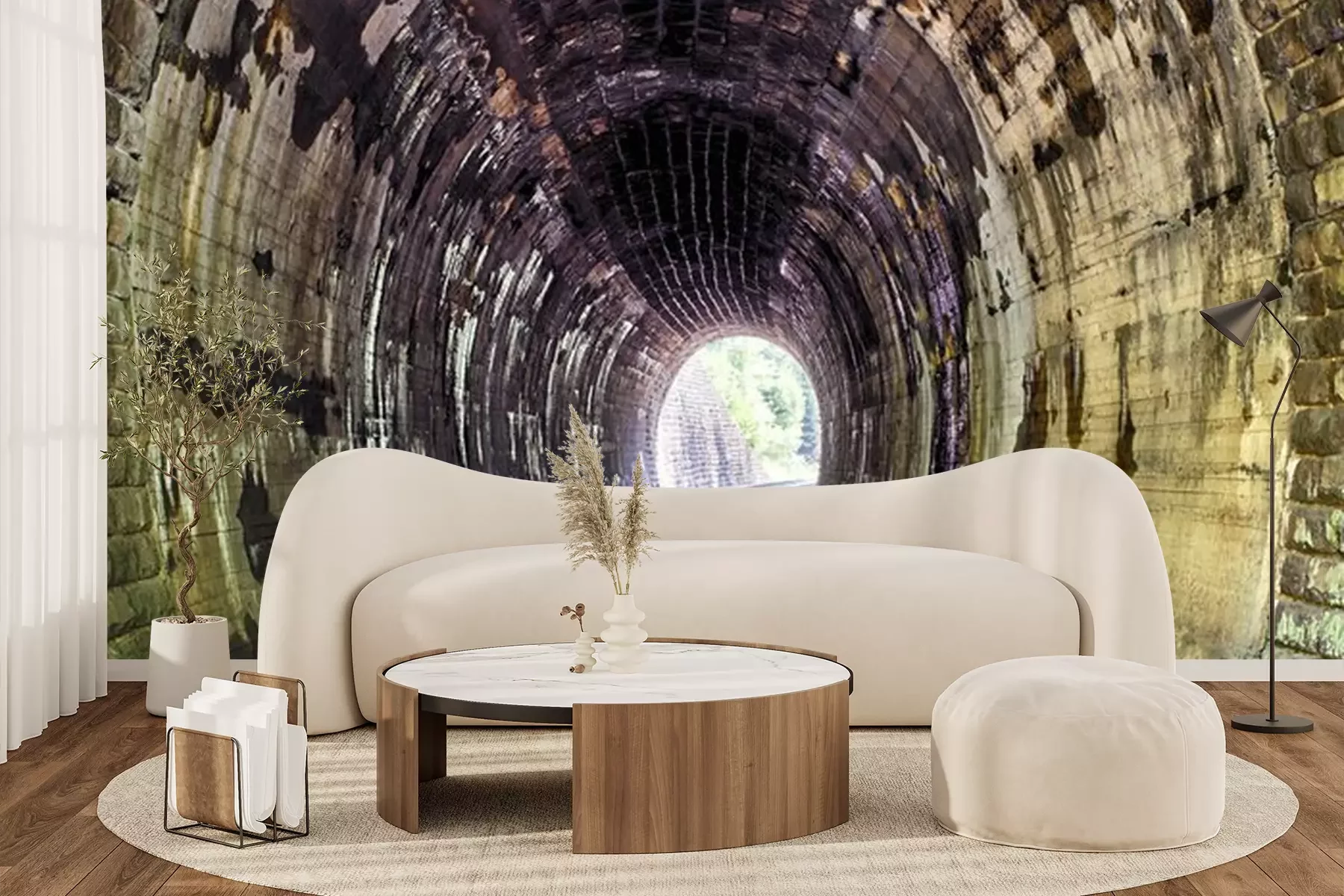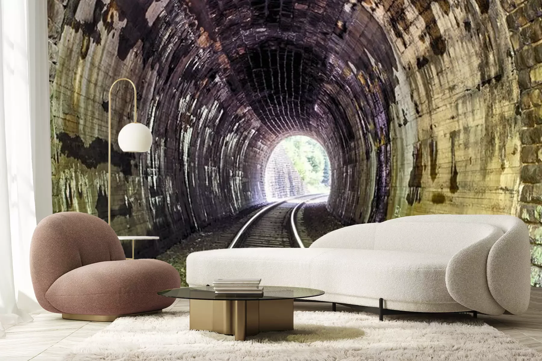 Verlichte bakstenen tunnel in 3DFotobehang