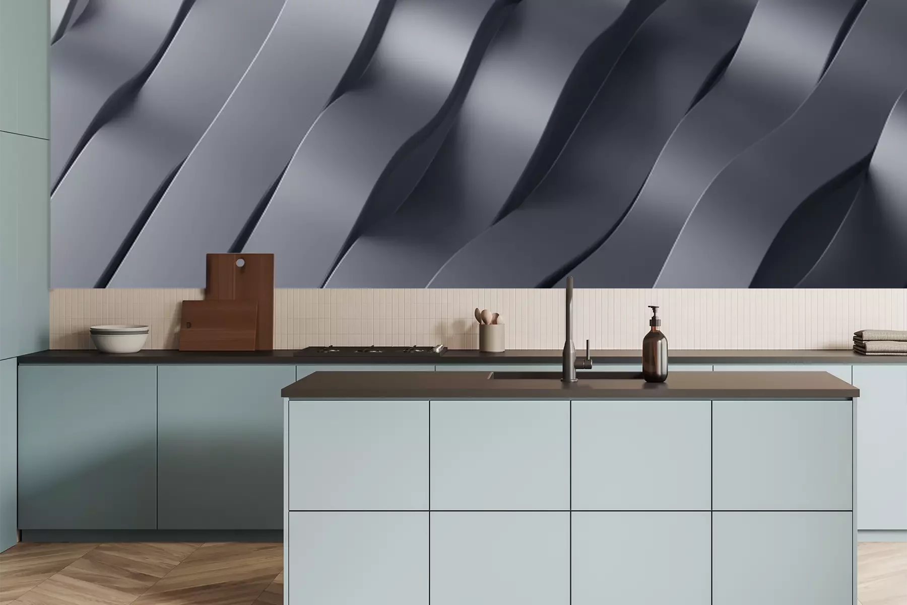 Fotobehang 3D stalen riemen