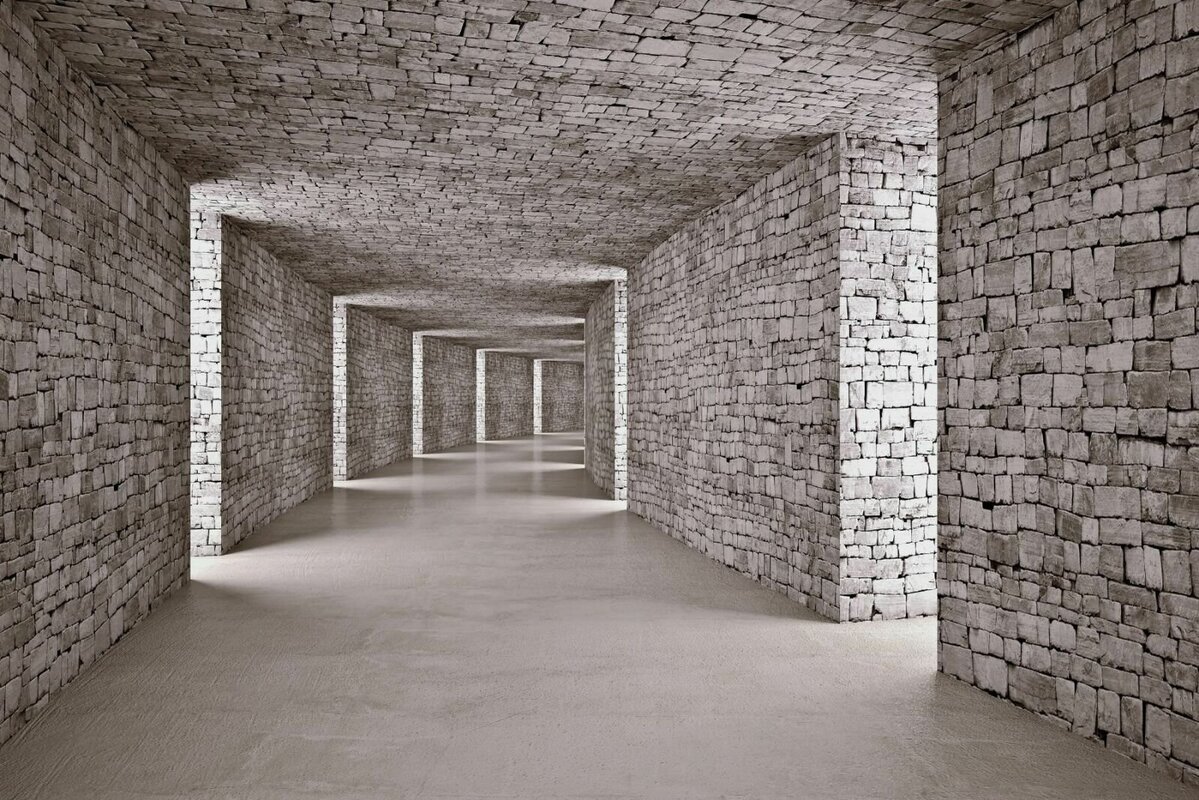 Fotobehang: 3D-stenen tunnel in grijstinten