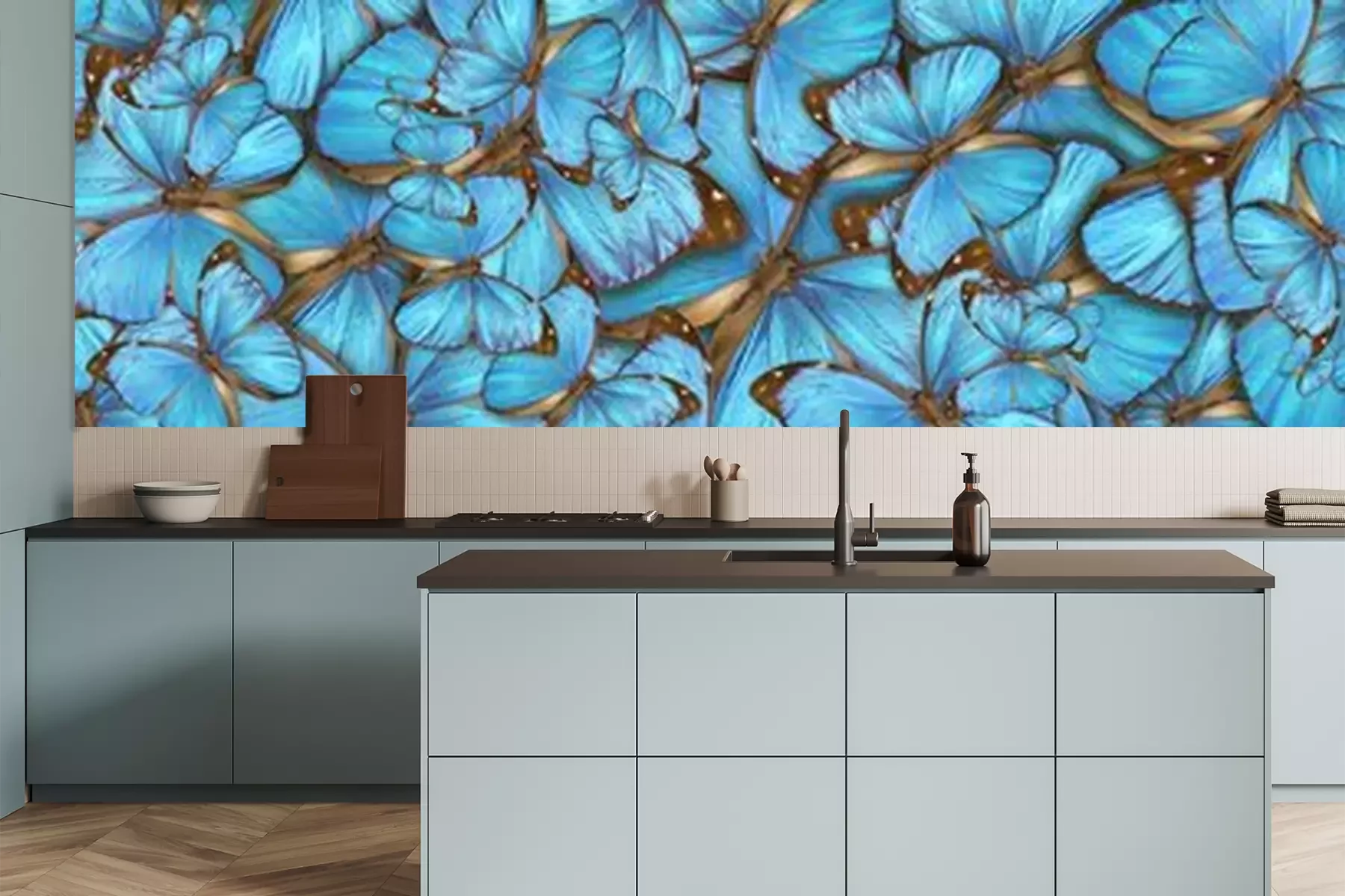 Het materiaal Premium is een glad vinyl op vlies, dat bestand is tegen uitrekken en vervorming. Het is dampdoorlatend – de muren kunnen vrij ademen – waardoor het geschikt is voor gebruik in de keuken en badkamer. Bij vervuiling kan het materiaal worden afgenomen met een vochtige doek. De maximale breedte van één baan bedraagt 95 of 105 cm, afhankelijk van de beschikbaarheid. Montage vindt plaats met de rand-aan-rand methode, wat een esthetisch resultaat zonder zichtbare naden oplevert. Omdat de lijm rechtstreeks op de muur wordt aangebracht, verloopt de installatie van het fotobehang snel en eenvoudig.