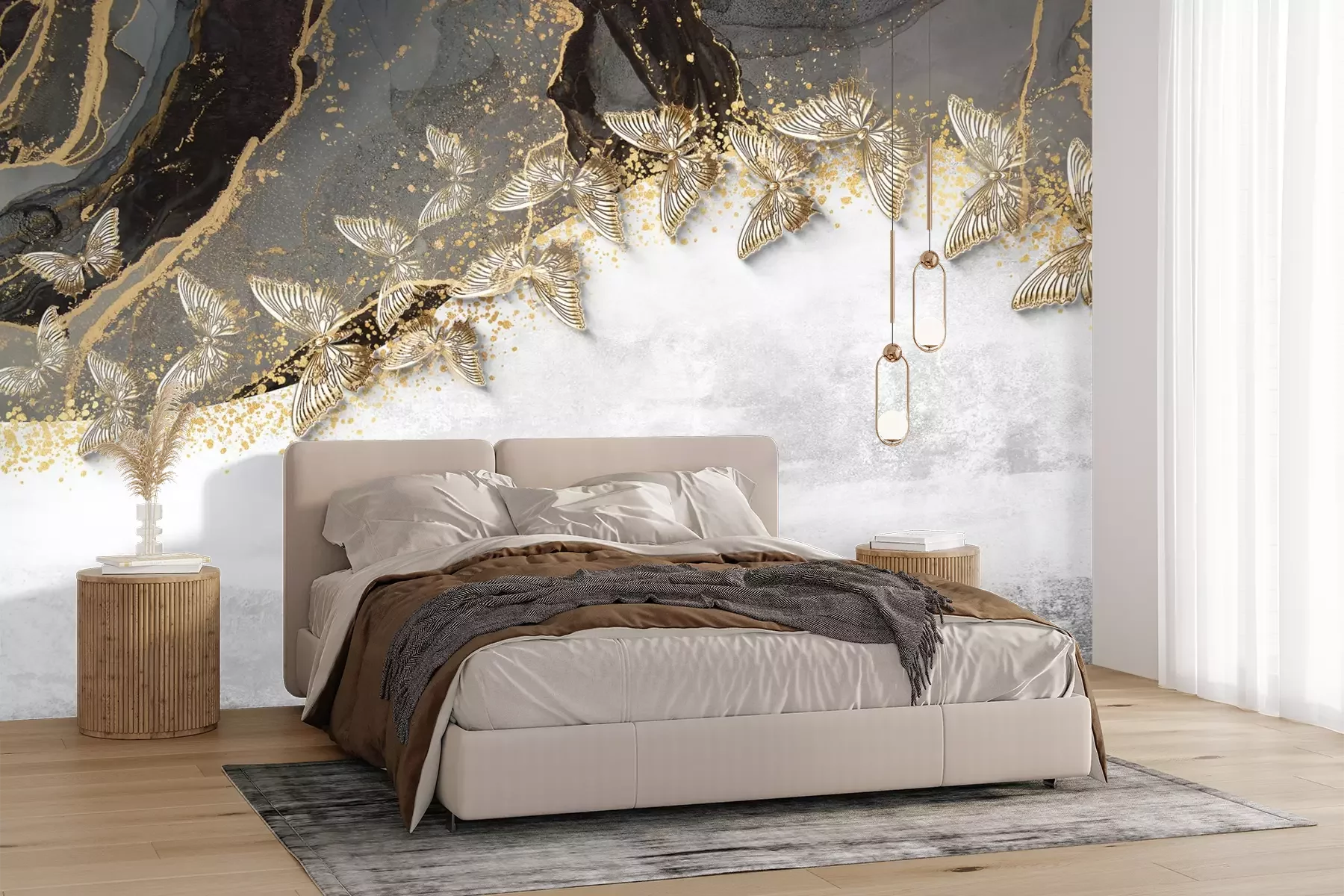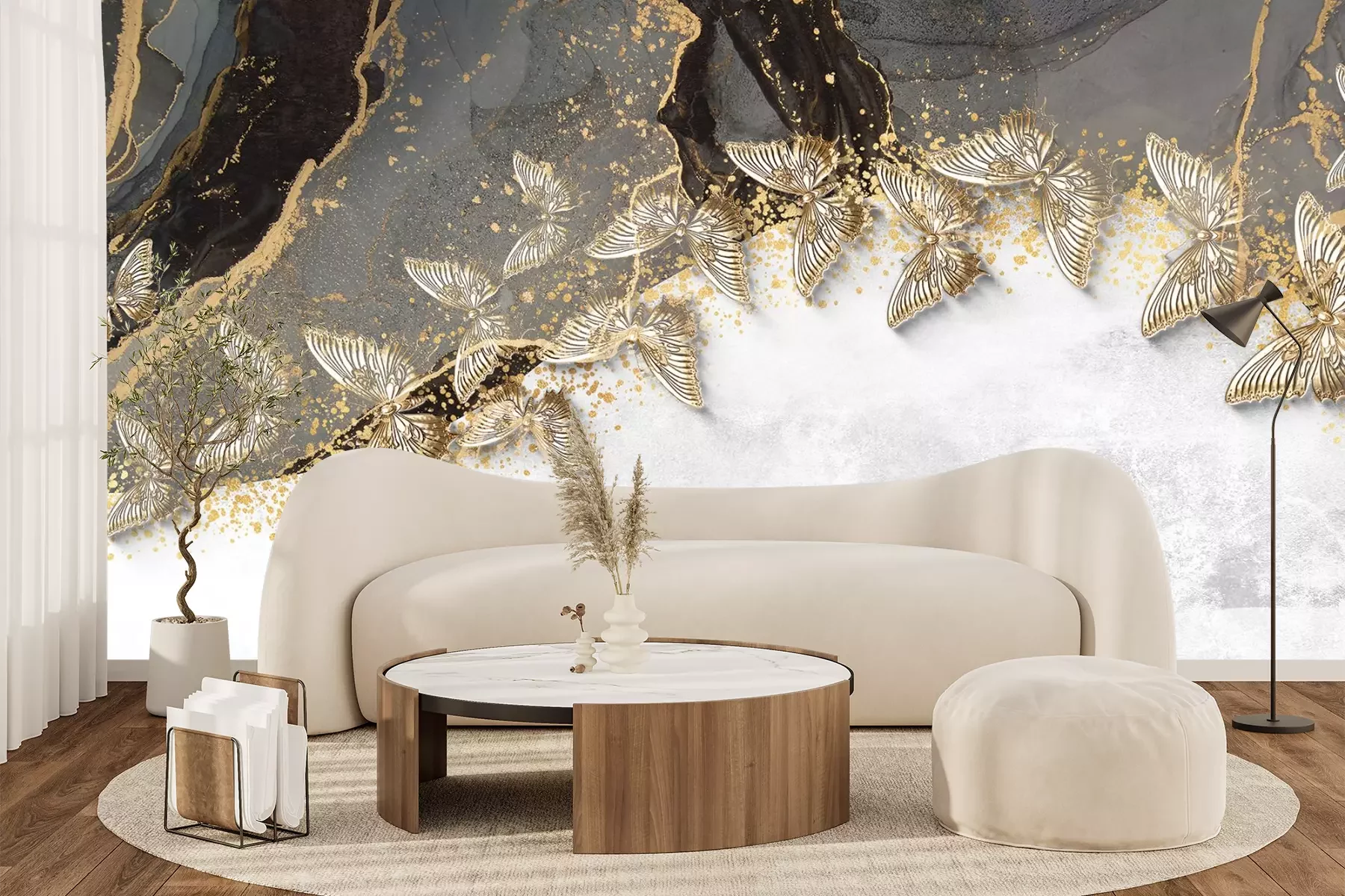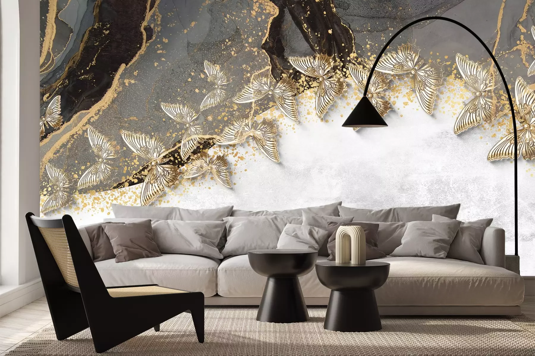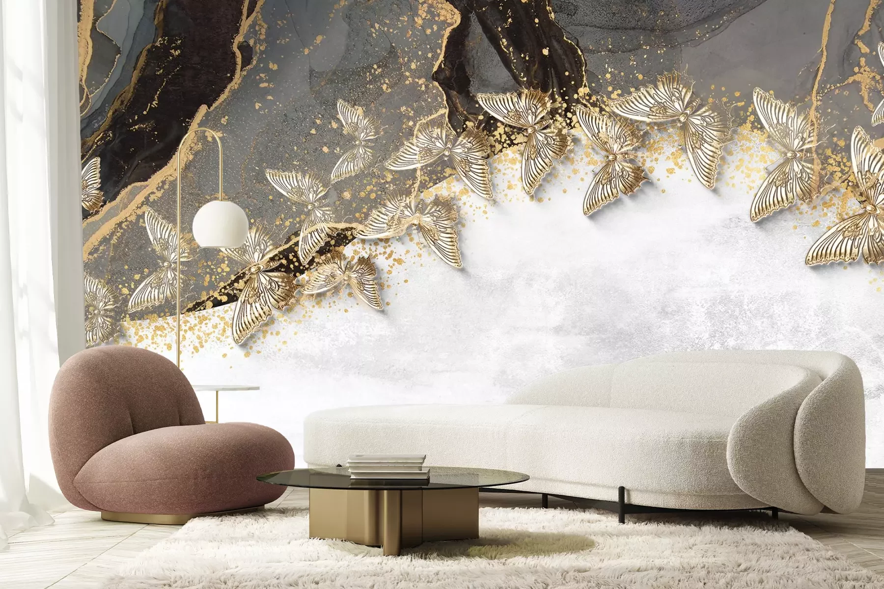 3d vlinders op een gestructureerde achtergrond, modern patroon