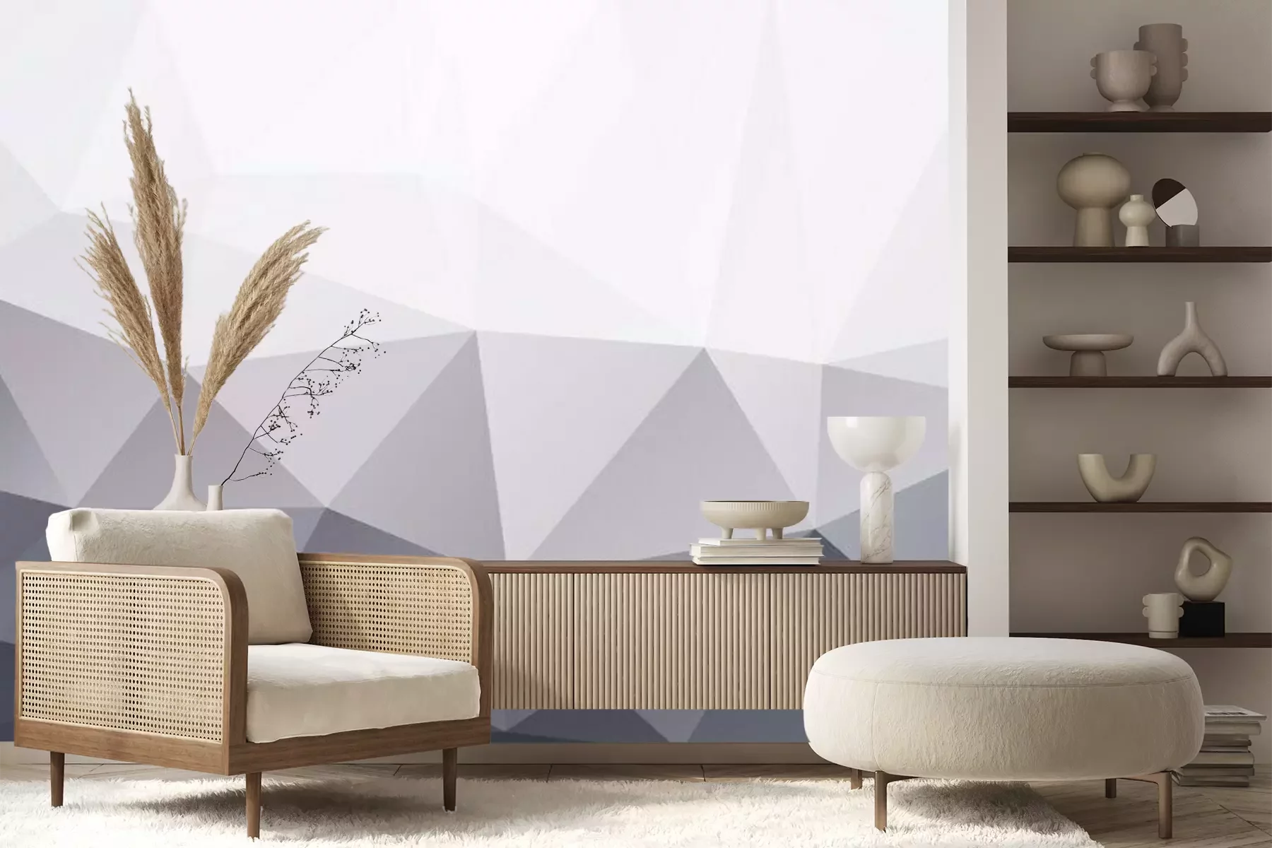 Fotobehang Abstract 3D wit en grijs effen