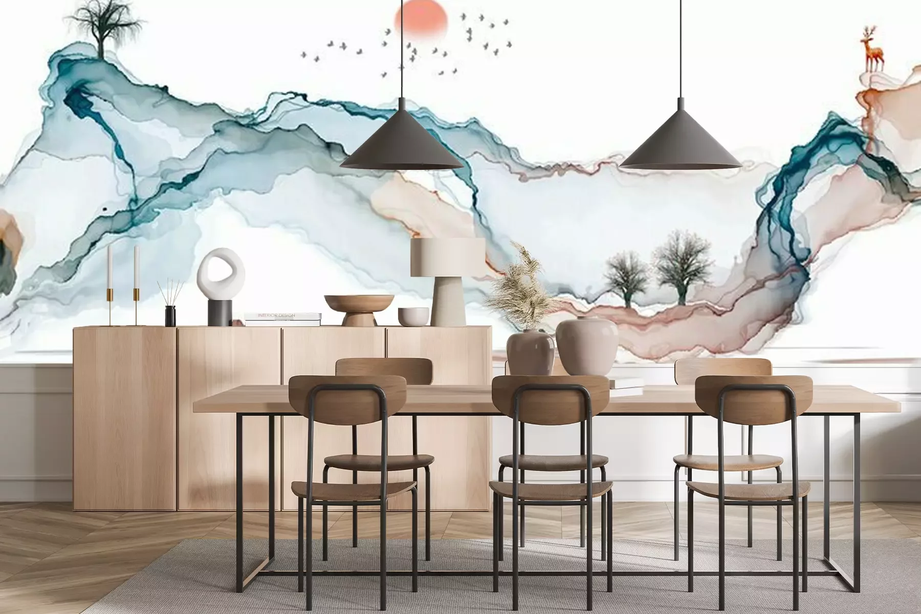 Het materiaal Premium+ is een gestructureerd vinyl op vlies met een gewicht van 255 g/m², dat kleine oneffenheden in de muur effectief camoufleert. De subtiele structuur van fijn zand geeft het oppervlak een exclusieve uitstraling, terwijl de halfmatte afwerking de diepte van de kleuren benadrukt. Het materiaal is dampdoorlatend, waardoor het ook in de keuken en badkamer kan worden gebruikt. De maximale breedte van één baan bedraagt 100 cm – bij grotere afmetingen wordt het fotobehang in meerdere gelijke banen verdeeld. De lijm wordt direct op de muur aangebracht en het behang wordt rand-aan-rand geplakt, wat zorgt voor een esthetisch resultaat zonder zichtbare naden. Het oppervlak kan gemakkelijk worden schoongemaakt door het voorzichtig af te nemen met een vochtige doek.