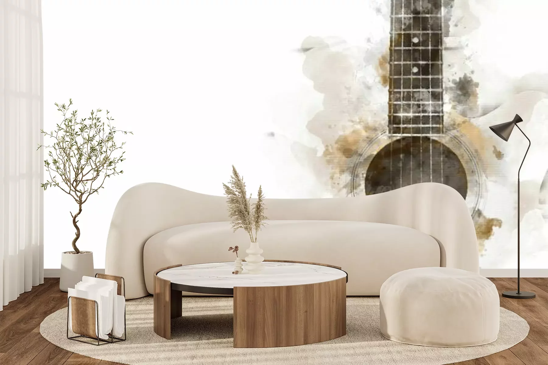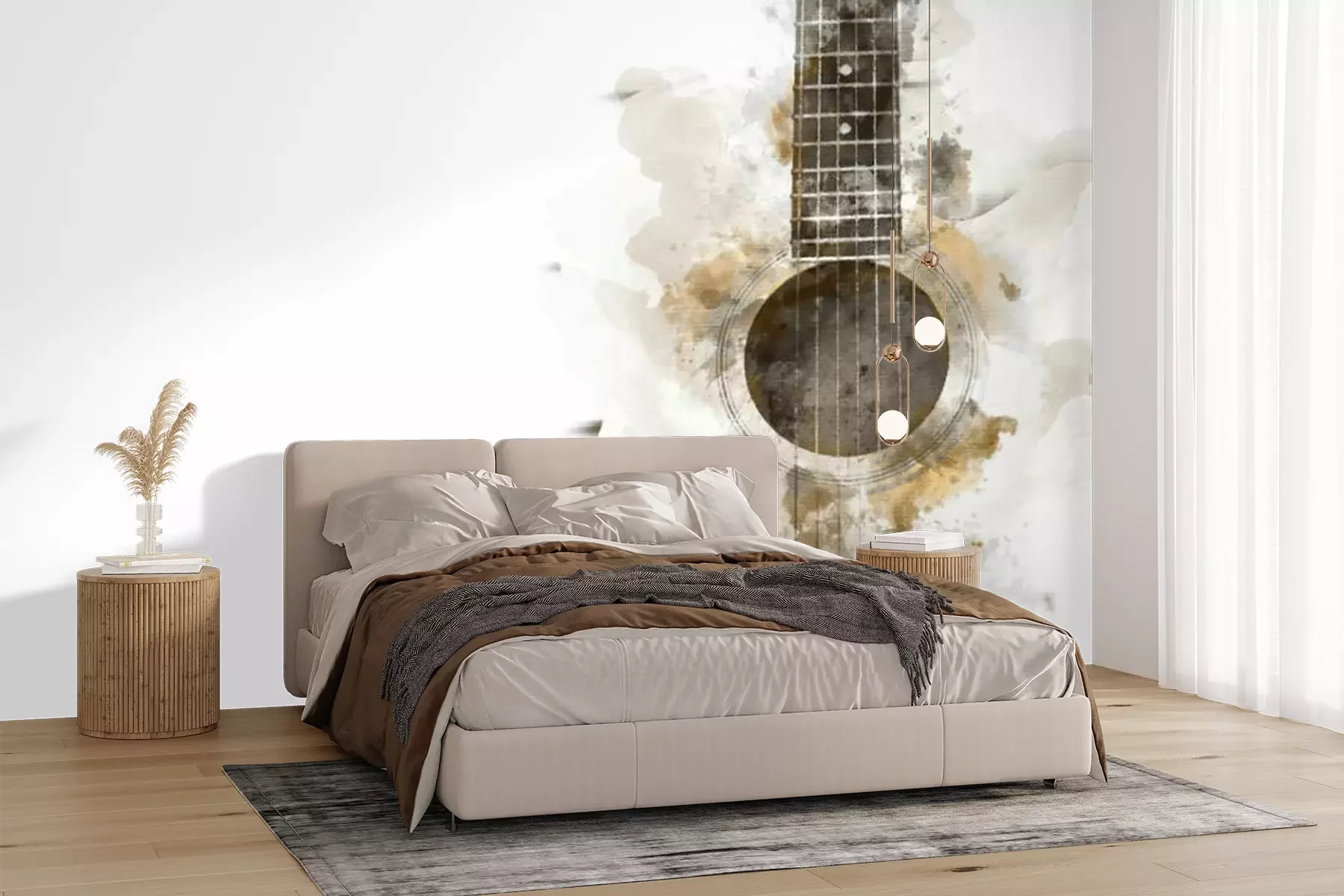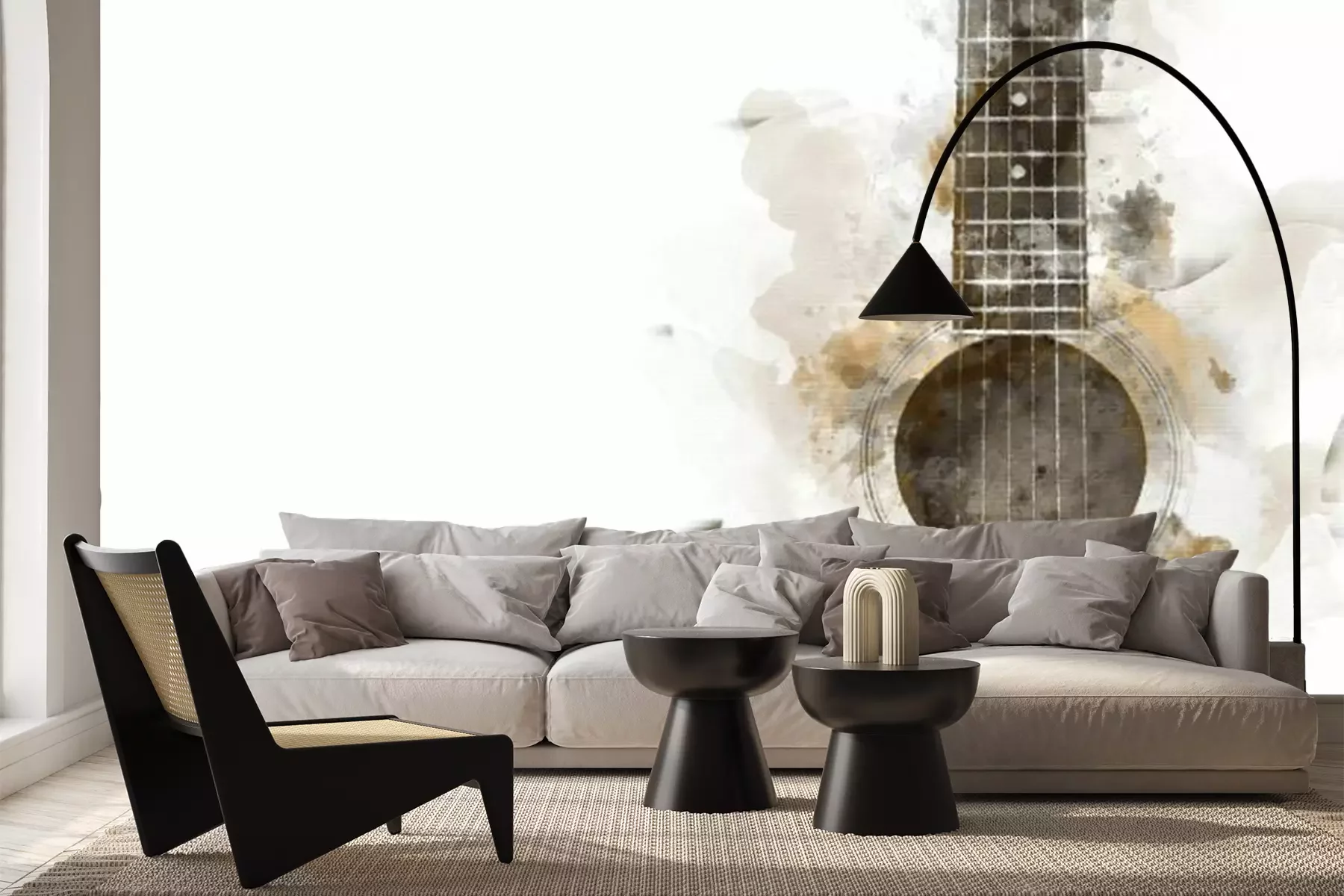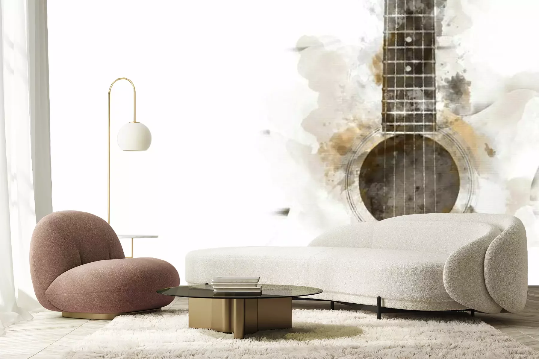 Blauwe aquarelgitaar op witte achtergrondProbleemloze bezorging verzorgd door vertrouwde vervoerders