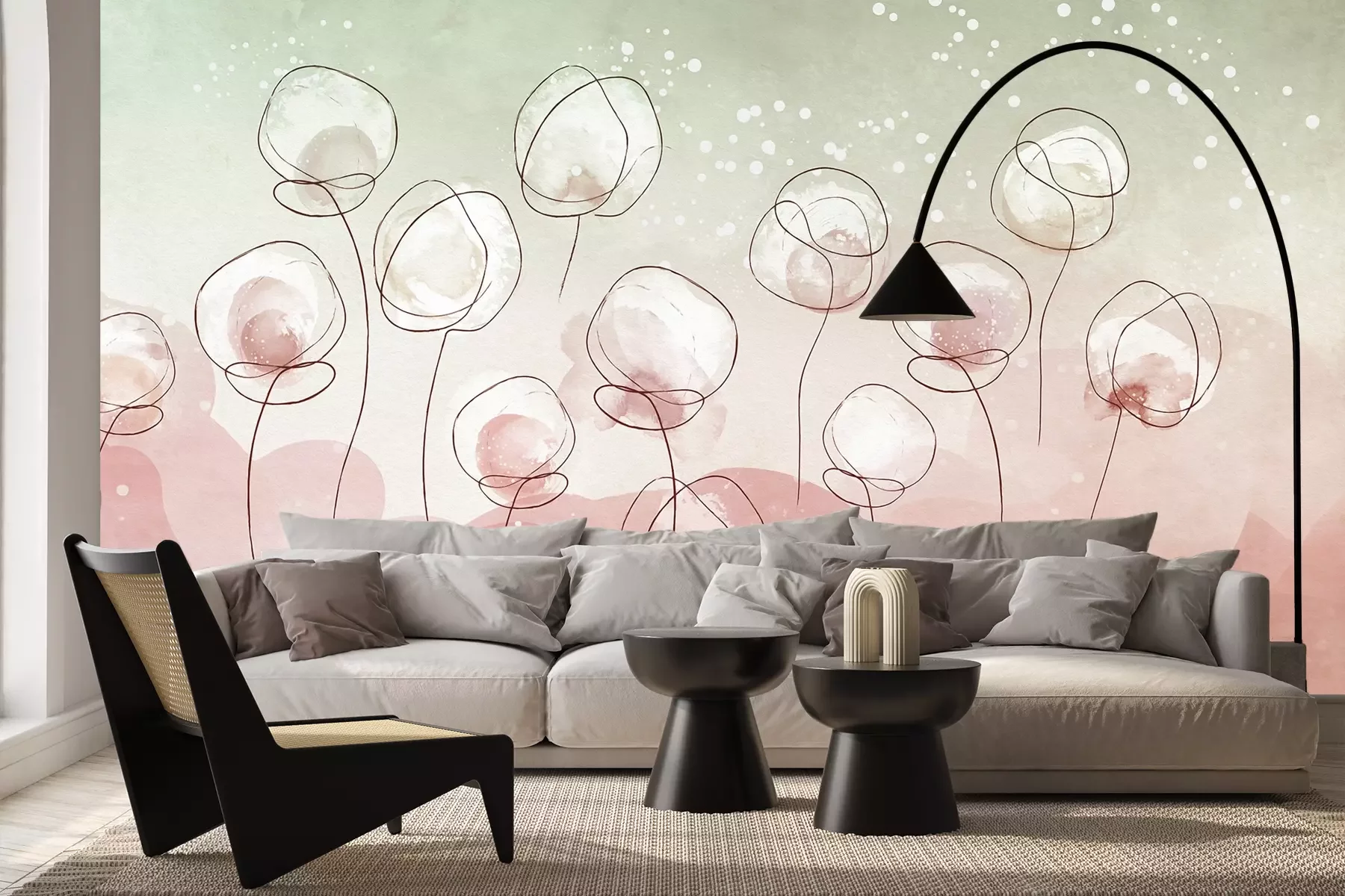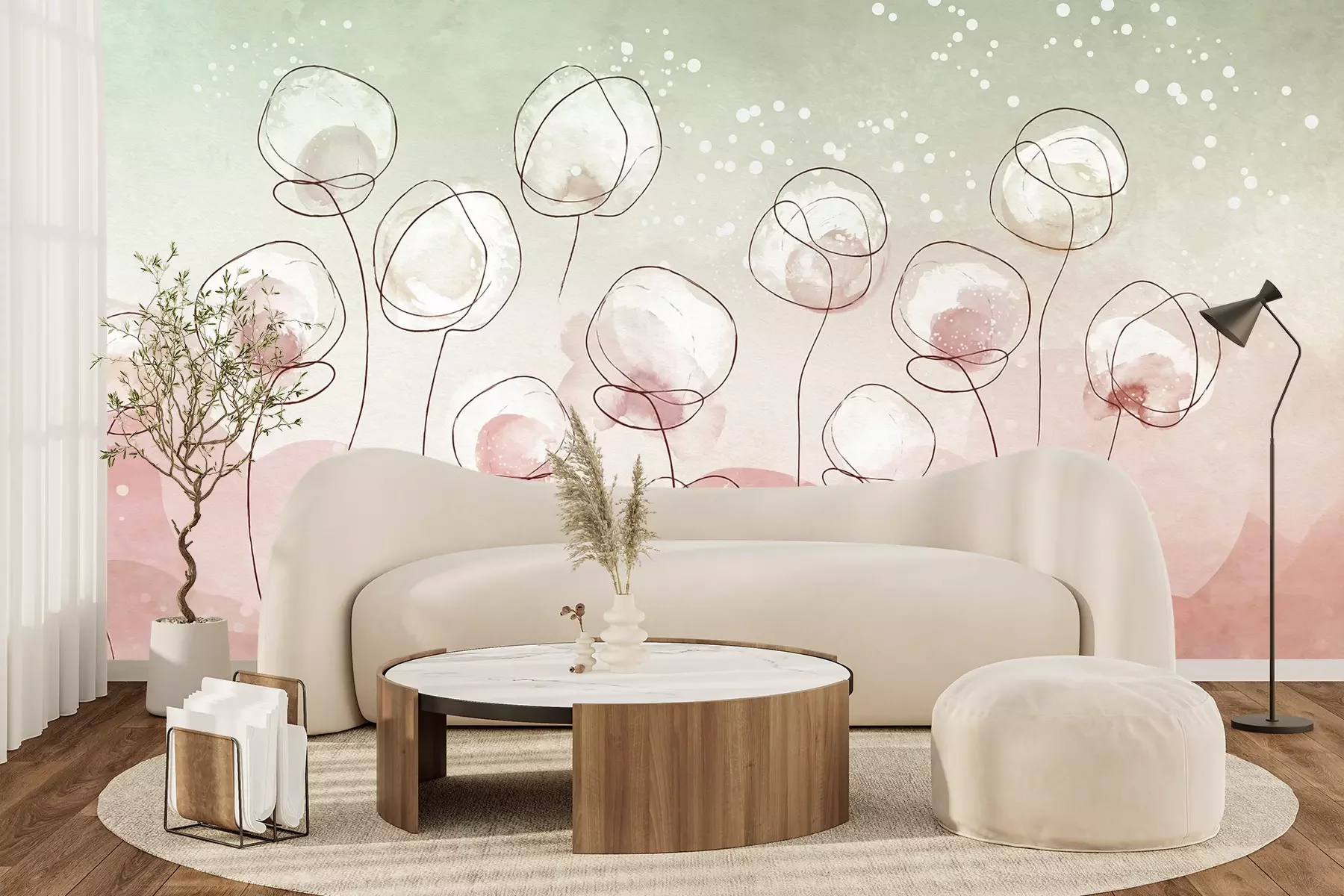 Het materiaal Premium+ is een gestructureerd vinyl op vlies met een gewicht van 255 g/m², dat kleine oneffenheden in de muur effectief camoufleert. De subtiele structuur van fijn zand geeft het oppervlak een exclusieve uitstraling, terwijl de halfmatte afwerking de diepte van de kleuren benadrukt. Het materiaal is dampdoorlatend, waardoor het ook in de keuken en badkamer kan worden gebruikt. De maximale breedte van één baan bedraagt 100 cm – bij grotere afmetingen wordt het fotobehang in meerdere gelijke banen verdeeld. De lijm wordt direct op de muur aangebracht en het behang wordt rand-aan-rand geplakt, wat zorgt voor een esthetisch resultaat zonder zichtbare naden. Het oppervlak kan gemakkelijk worden schoongemaakt door het voorzichtig af te nemen met een vochtige doek.