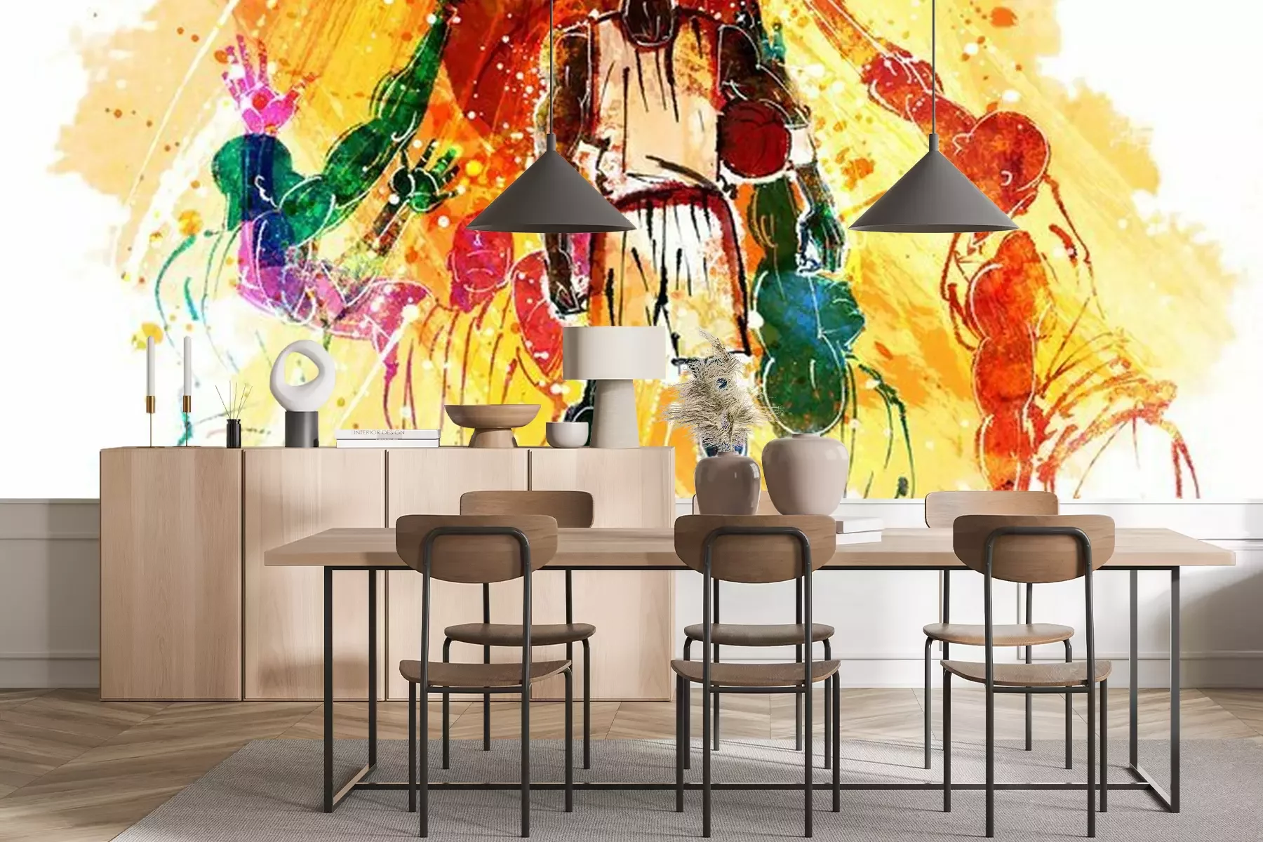 Het materiaal Standard is een hoogwaardig latexmateriaal met een glad, mat oppervlak. Dankzij de HP Latex-printtechnologie zijn de kleuren intens, duurzaam en UV-bestendig, waardoor het patroon jarenlang een onberispelijke uitstraling behoudt. Vervuilde oppervlakken kunnen voorzichtig worden afgeveegd met een droge doek. De maximale breedte van één baan bedraagt 95 cm of 105 cm – afhankelijk van de bestelde fotobehangbreedte. Bij grotere afmetingen wordt het patroon verdeeld over meerdere gelijkmatige banen. Het fotobehang wordt rand-aan-randaangebracht, wat vrijwel onzichtbare naden mogelijk maakt.