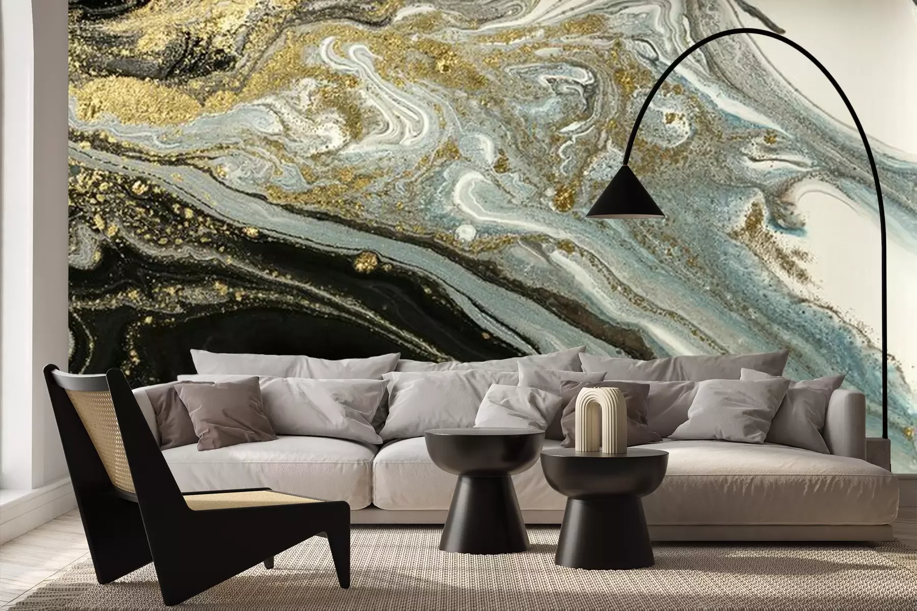 Het materiaal Premium+ is een gestructureerd vinyl op vlies met een gewicht van 255 g/m², dat kleine oneffenheden in de muur effectief camoufleert. De subtiele structuur van fijn zand geeft het oppervlak een exclusieve uitstraling, terwijl de halfmatte afwerking de diepte van de kleuren benadrukt. Het materiaal is dampdoorlatend, waardoor het ook in de keuken en badkamer kan worden gebruikt. De maximale breedte van één baan bedraagt 100 cm – bij grotere afmetingen wordt het fotobehang in meerdere gelijke banen verdeeld. De lijm wordt direct op de muur aangebracht en het behang wordt rand-aan-rand geplakt, wat zorgt voor een esthetisch resultaat zonder zichtbare naden. Het oppervlak kan gemakkelijk worden schoongemaakt door het voorzichtig af te nemen met een vochtige doek.