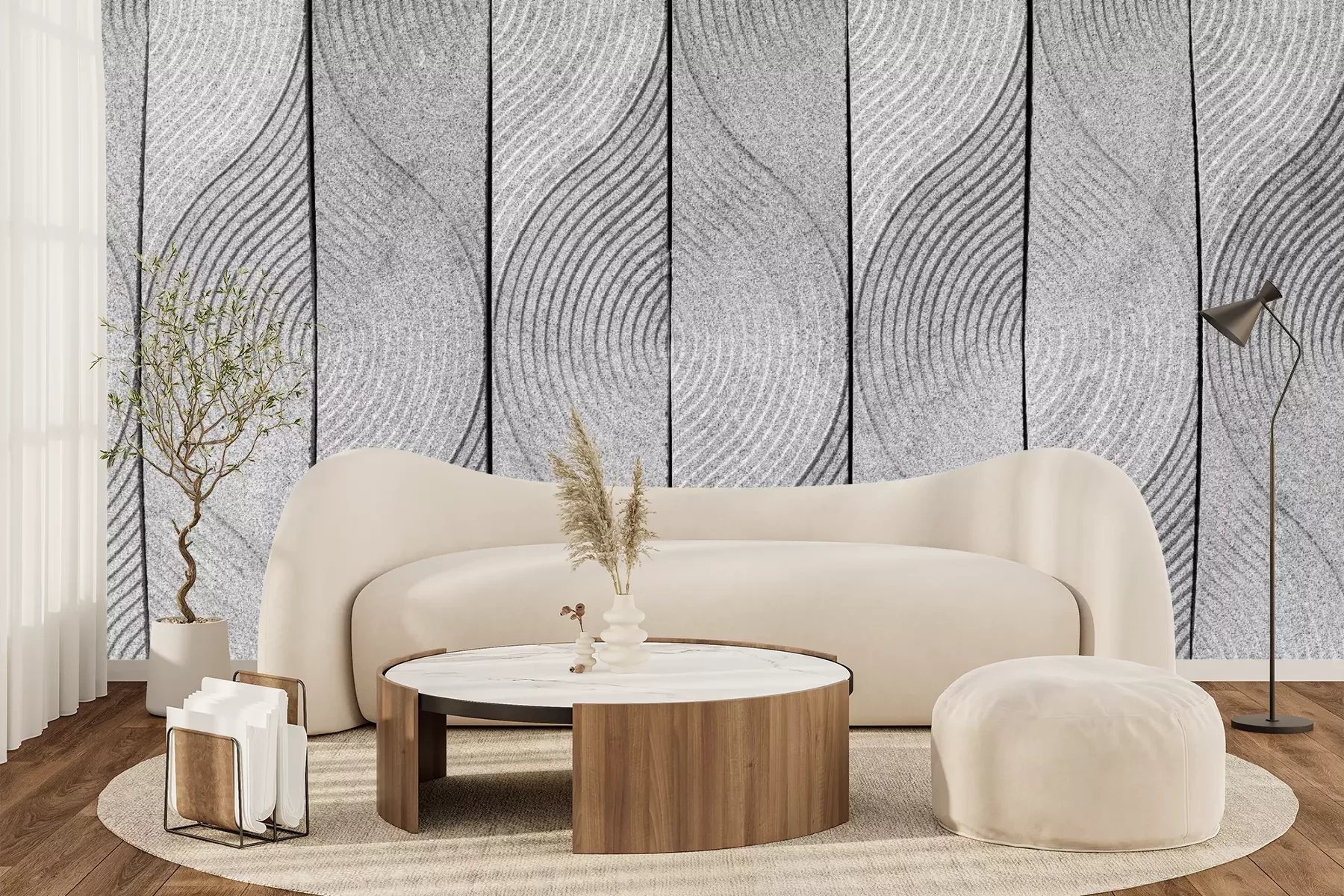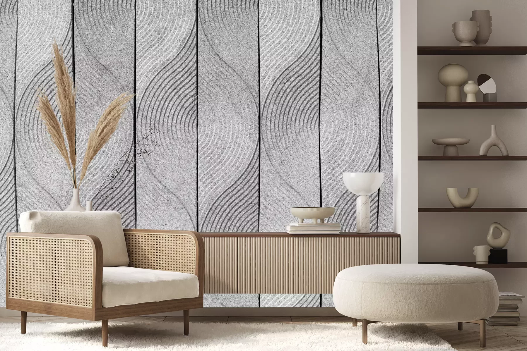 Het materiaal Premium+ is een gestructureerd vinyl op vlies met een gewicht van 255 g/m², dat kleine oneffenheden in de muur effectief camoufleert. De subtiele structuur van fijn zand geeft het oppervlak een exclusieve uitstraling, terwijl de halfmatte afwerking de diepte van de kleuren benadrukt. Het materiaal is dampdoorlatend, waardoor het ook in de keuken en badkamer kan worden gebruikt. De maximale breedte van één baan bedraagt 100 cm – bij grotere afmetingen wordt het fotobehang in meerdere gelijke banen verdeeld. De lijm wordt direct op de muur aangebracht en het behang wordt rand-aan-rand geplakt, wat zorgt voor een esthetisch resultaat zonder zichtbare naden. Het oppervlak kan gemakkelijk worden schoongemaakt door het voorzichtig af te nemen met een vochtige doek.