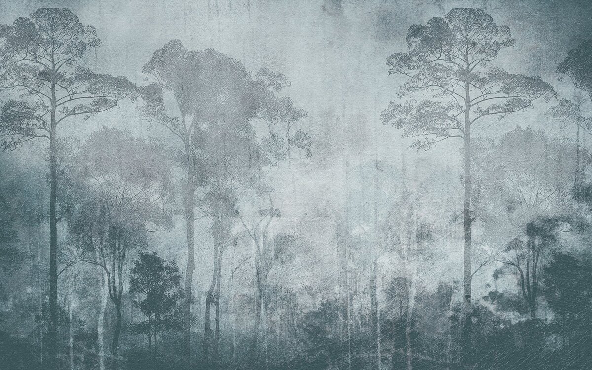 Fotobehang: Abstract landschap met een bos in blauwe kleuren