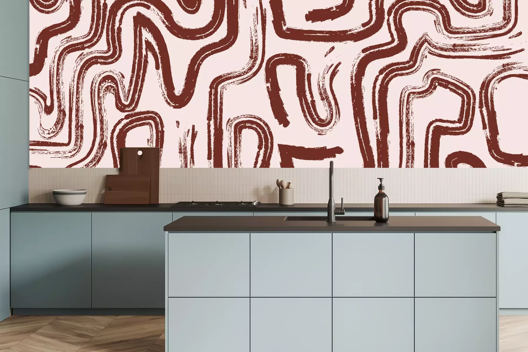 Het materiaal Premium is een glad vinyl op vlies, dat bestand is tegen uitrekken en vervorming. Het is dampdoorlatend – de muren kunnen vrij ademen – waardoor het geschikt is voor gebruik in de keuken en badkamer. Bij vervuiling kan het materiaal worden afgenomen met een vochtige doek. De maximale breedte van één baan bedraagt 95 of 105 cm, afhankelijk van de beschikbaarheid. Montage vindt plaats met de rand-aan-rand methode, wat een esthetisch resultaat zonder zichtbare naden oplevert. Omdat de lijm rechtstreeks op de muur wordt aangebracht, verloopt de installatie van het fotobehang snel en eenvoudig.