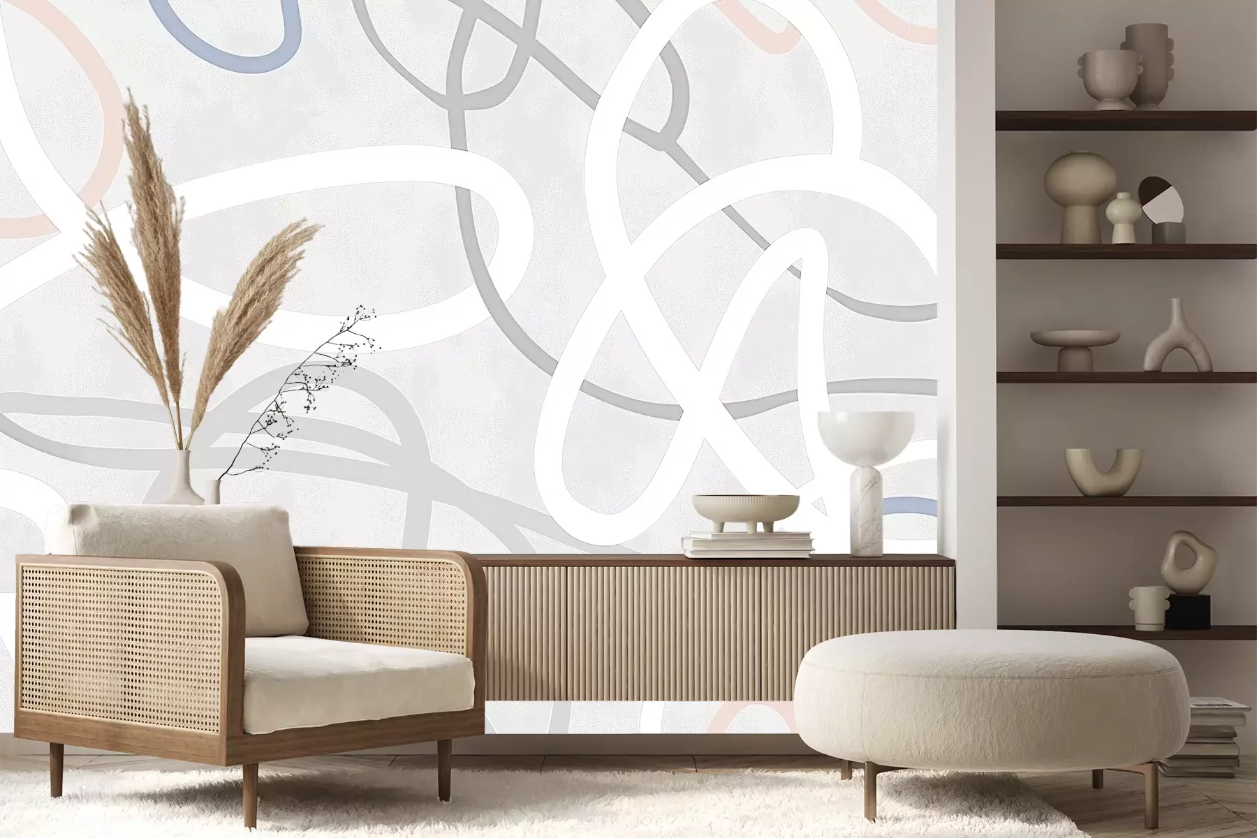 Het materiaal Premium+ is een gestructureerd vinyl op vlies met een gewicht van 255 g/m², dat kleine oneffenheden in de muur effectief camoufleert. De subtiele structuur van fijn zand geeft het oppervlak een exclusieve uitstraling, terwijl de halfmatte afwerking de diepte van de kleuren benadrukt. Het materiaal is dampdoorlatend, waardoor het ook in de keuken en badkamer kan worden gebruikt. De maximale breedte van één baan bedraagt 100 cm – bij grotere afmetingen wordt het fotobehang in meerdere gelijke banen verdeeld. De lijm wordt direct op de muur aangebracht en het behang wordt rand-aan-rand geplakt, wat zorgt voor een esthetisch resultaat zonder zichtbare naden. Het oppervlak kan gemakkelijk worden schoongemaakt door het voorzichtig af te nemen met een vochtige doek.