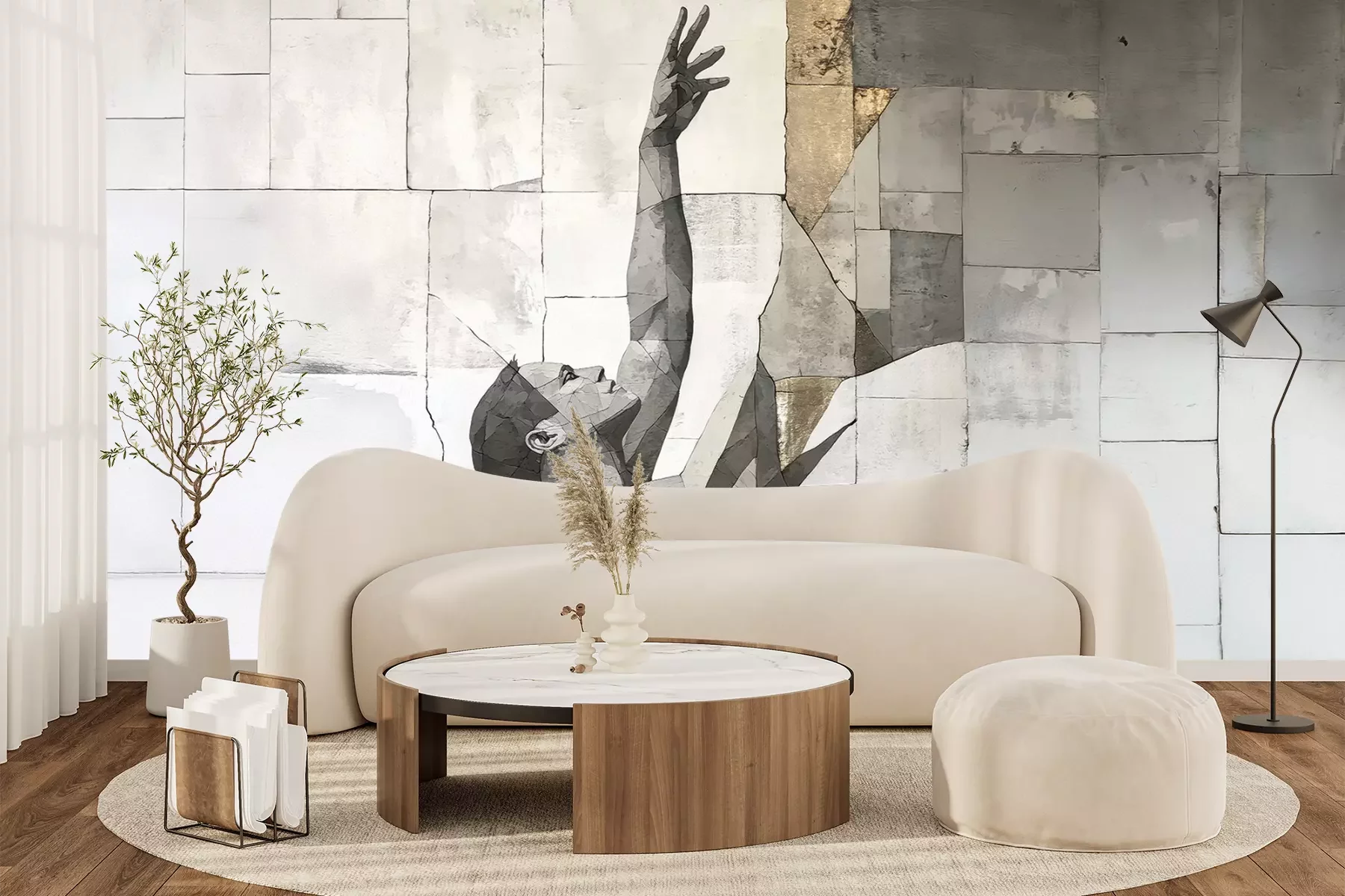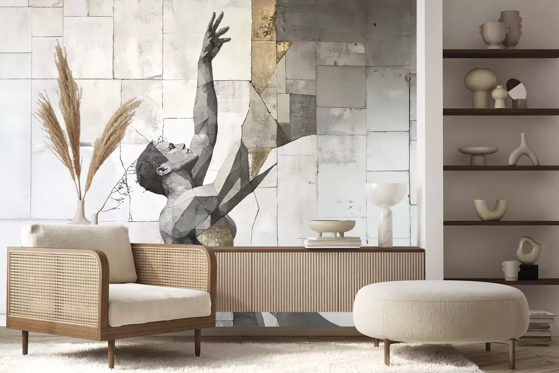 Het materiaal Premium+ is een gestructureerd vinyl op vlies met een gewicht van 255 g/m², dat kleine oneffenheden in de muur effectief camoufleert. De subtiele structuur van fijn zand geeft het oppervlak een exclusieve uitstraling, terwijl de halfmatte afwerking de diepte van de kleuren benadrukt. Het materiaal is dampdoorlatend, waardoor het ook in de keuken en badkamer kan worden gebruikt. De maximale breedte van één baan bedraagt 100 cm – bij grotere afmetingen wordt het fotobehang in meerdere gelijke banen verdeeld. De lijm wordt direct op de muur aangebracht en het behang wordt rand-aan-rand geplakt, wat zorgt voor een esthetisch resultaat zonder zichtbare naden. Het oppervlak kan gemakkelijk worden schoongemaakt door het voorzichtig af te nemen met een vochtige doek.