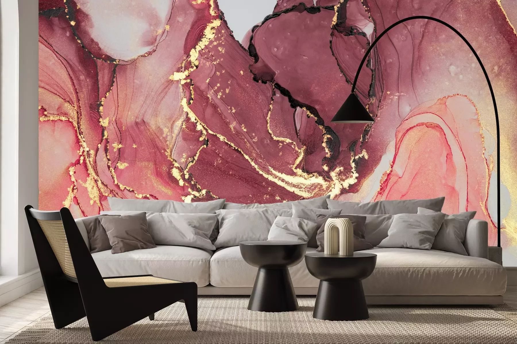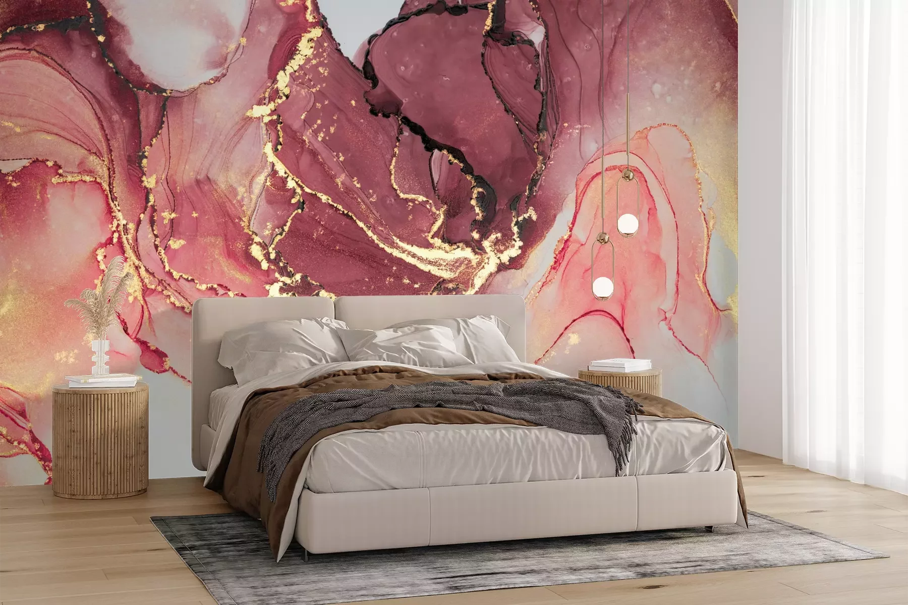 Het materiaal Premium+ is een gestructureerd vinyl op vlies met een gewicht van 255 g/m², dat kleine oneffenheden in de muur effectief camoufleert. De subtiele structuur van fijn zand geeft het oppervlak een exclusieve uitstraling, terwijl de halfmatte afwerking de diepte van de kleuren benadrukt. Het materiaal is dampdoorlatend, waardoor het ook in de keuken en badkamer kan worden gebruikt. De maximale breedte van één baan bedraagt 100 cm – bij grotere afmetingen wordt het fotobehang in meerdere gelijke banen verdeeld. De lijm wordt direct op de muur aangebracht en het behang wordt rand-aan-rand geplakt, wat zorgt voor een esthetisch resultaat zonder zichtbare naden. Het oppervlak kan gemakkelijk worden schoongemaakt door het voorzichtig af te nemen met een vochtige doek.