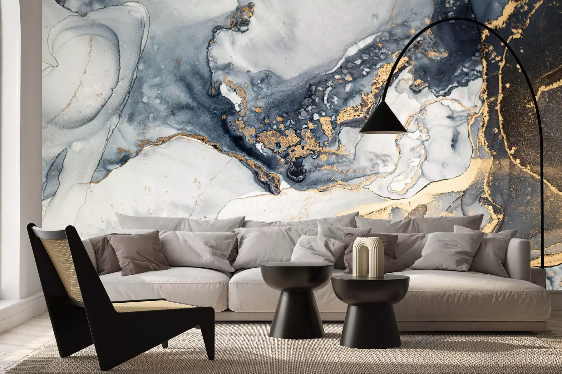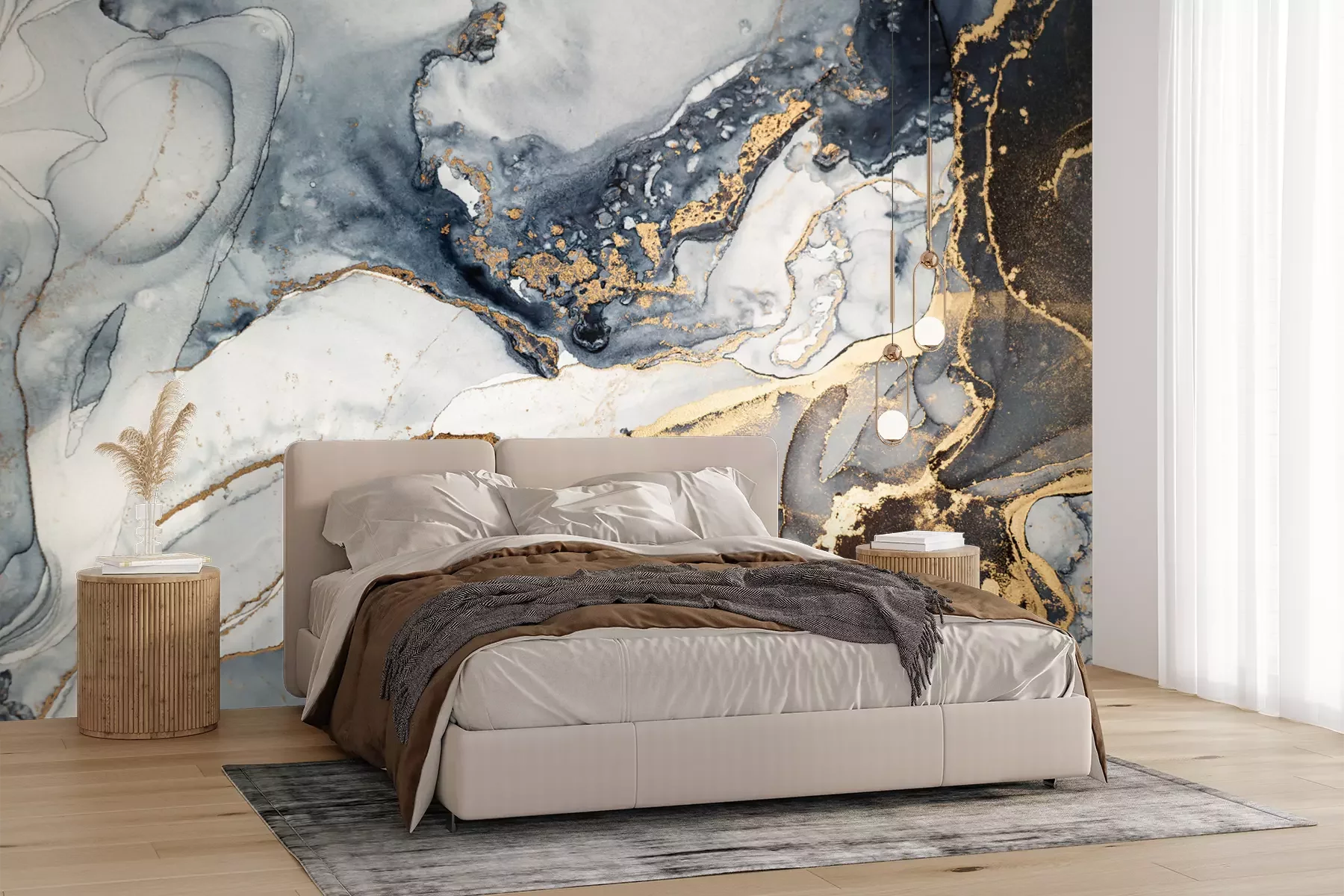 Het materiaal Premium+ is een gestructureerd vinyl op vlies met een gewicht van 255 g/m², dat kleine oneffenheden in de muur effectief camoufleert. De subtiele structuur van fijn zand geeft het oppervlak een exclusieve uitstraling, terwijl de halfmatte afwerking de diepte van de kleuren benadrukt. Het materiaal is dampdoorlatend, waardoor het ook in de keuken en badkamer kan worden gebruikt. De maximale breedte van één baan bedraagt 100 cm – bij grotere afmetingen wordt het fotobehang in meerdere gelijke banen verdeeld. De lijm wordt direct op de muur aangebracht en het behang wordt rand-aan-rand geplakt, wat zorgt voor een esthetisch resultaat zonder zichtbare naden. Het oppervlak kan gemakkelijk worden schoongemaakt door het voorzichtig af te nemen met een vochtige doek.