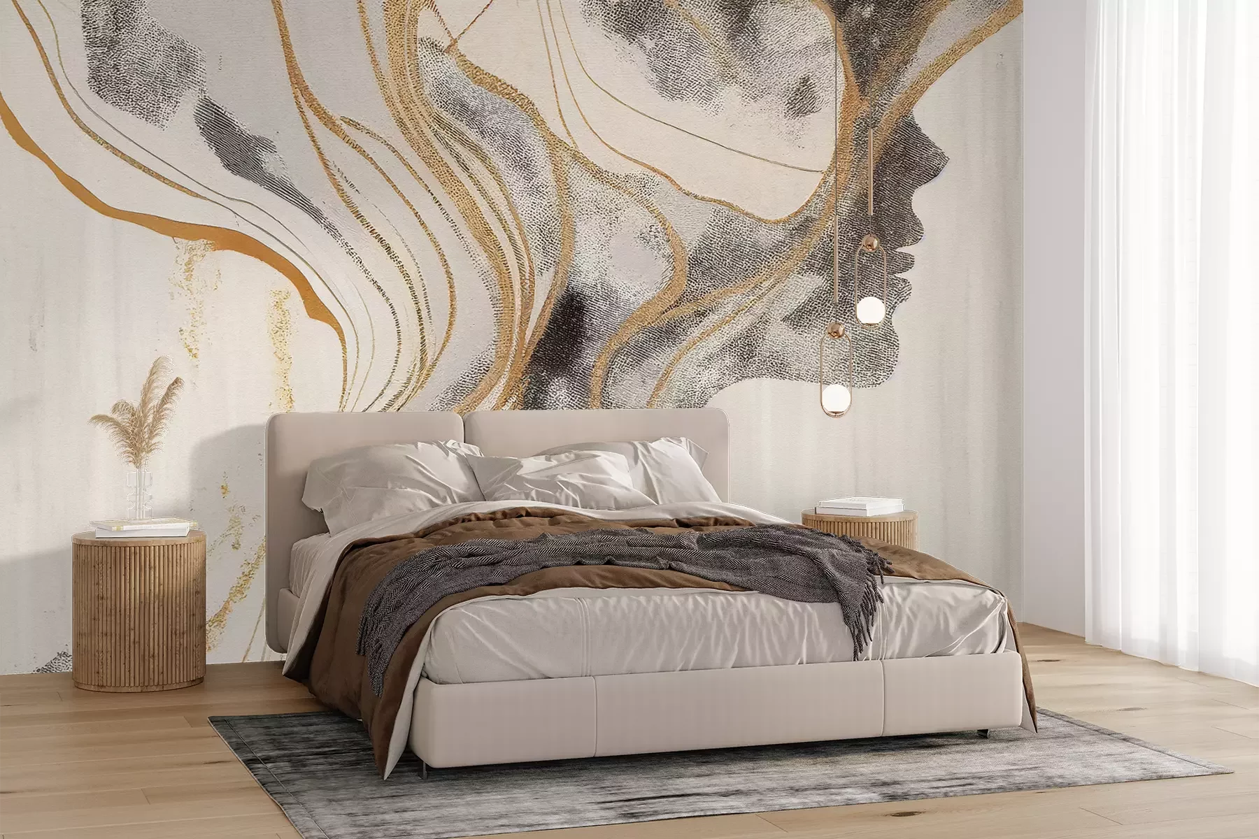 Het materiaal Premium+ is een gestructureerd vinyl op vlies met een gewicht van 255 g/m², dat kleine oneffenheden in de muur effectief camoufleert. De subtiele structuur van fijn zand geeft het oppervlak een exclusieve uitstraling, terwijl de halfmatte afwerking de diepte van de kleuren benadrukt. Het materiaal is dampdoorlatend, waardoor het ook in de keuken en badkamer kan worden gebruikt. De maximale breedte van één baan bedraagt 100 cm – bij grotere afmetingen wordt het fotobehang in meerdere gelijke banen verdeeld. De lijm wordt direct op de muur aangebracht en het behang wordt rand-aan-rand geplakt, wat zorgt voor een esthetisch resultaat zonder zichtbare naden. Het oppervlak kan gemakkelijk worden schoongemaakt door het voorzichtig af te nemen met een vochtige doek.