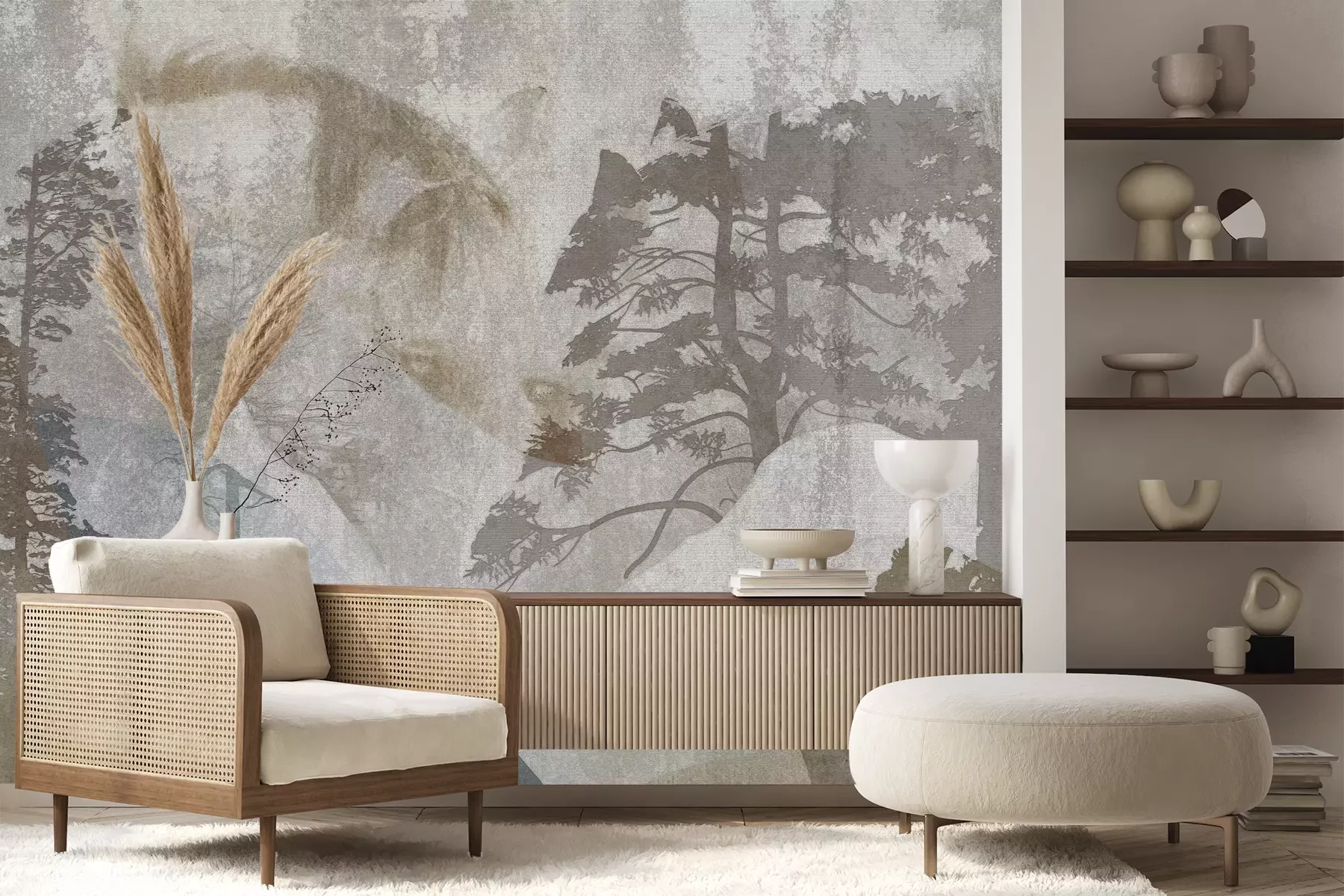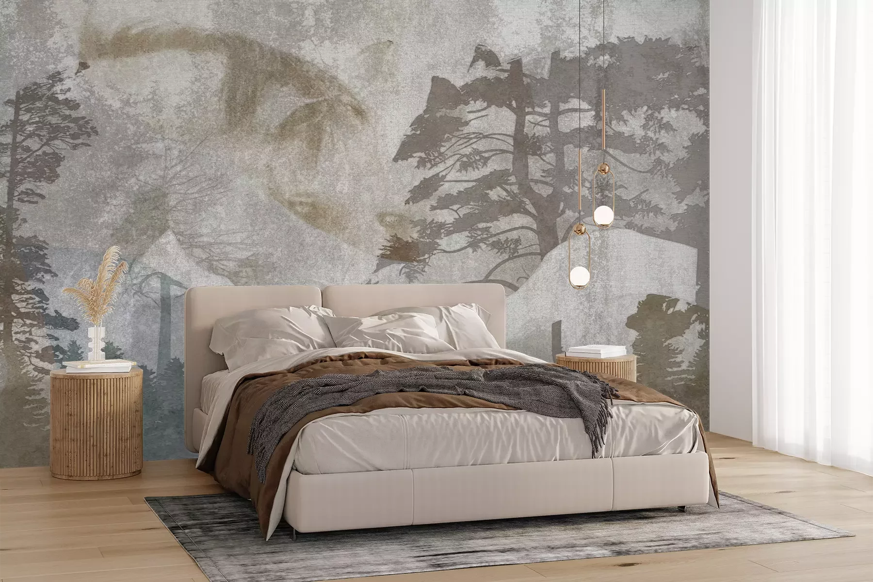 Het materiaal Premium+ is een gestructureerd vinyl op vlies met een gewicht van 255 g/m², dat kleine oneffenheden in de muur effectief camoufleert. De subtiele structuur van fijn zand geeft het oppervlak een exclusieve uitstraling, terwijl de halfmatte afwerking de diepte van de kleuren benadrukt. Het materiaal is dampdoorlatend, waardoor het ook in de keuken en badkamer kan worden gebruikt. De maximale breedte van één baan bedraagt 100 cm – bij grotere afmetingen wordt het fotobehang in meerdere gelijke banen verdeeld. De lijm wordt direct op de muur aangebracht en het behang wordt rand-aan-rand geplakt, wat zorgt voor een esthetisch resultaat zonder zichtbare naden. Het oppervlak kan gemakkelijk worden schoongemaakt door het voorzichtig af te nemen met een vochtige doek.