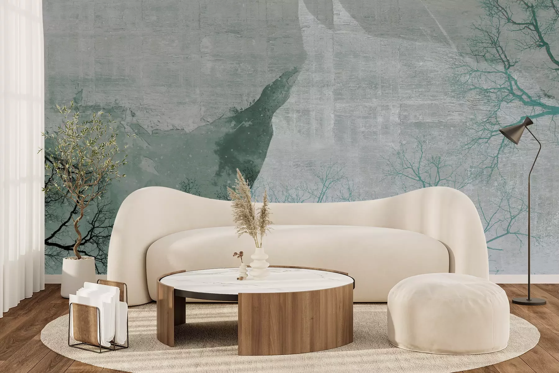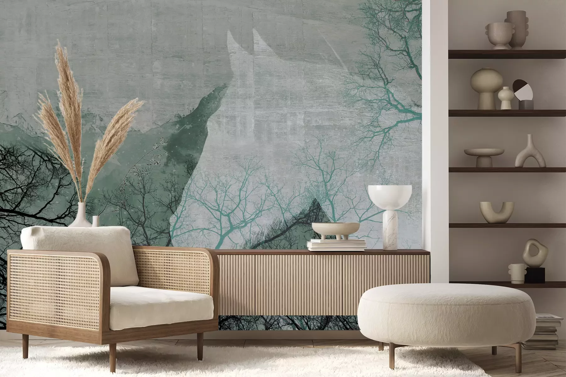 Het materiaal Premium+ is een gestructureerd vinyl op vlies met een gewicht van 255 g/m², dat kleine oneffenheden in de muur effectief camoufleert. De subtiele structuur van fijn zand geeft het oppervlak een exclusieve uitstraling, terwijl de halfmatte afwerking de diepte van de kleuren benadrukt. Het materiaal is dampdoorlatend, waardoor het ook in de keuken en badkamer kan worden gebruikt. De maximale breedte van één baan bedraagt 100 cm – bij grotere afmetingen wordt het fotobehang in meerdere gelijke banen verdeeld. De lijm wordt direct op de muur aangebracht en het behang wordt rand-aan-rand geplakt, wat zorgt voor een esthetisch resultaat zonder zichtbare naden. Het oppervlak kan gemakkelijk worden schoongemaakt door het voorzichtig af te nemen met een vochtige doek.