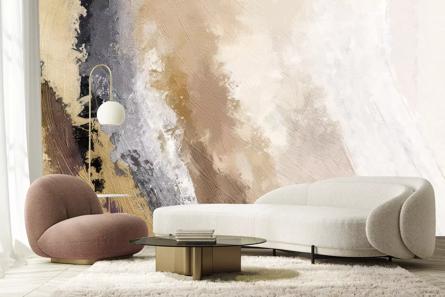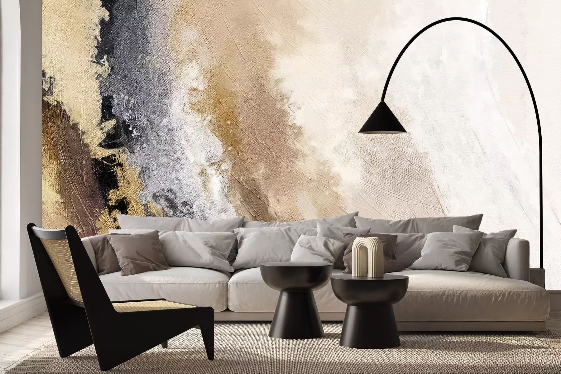 Het materiaal Premium+ is een gestructureerd vinyl op vlies met een gewicht van 255 g/m², dat kleine oneffenheden in de muur effectief camoufleert. De subtiele structuur van fijn zand geeft het oppervlak een exclusieve uitstraling, terwijl de halfmatte afwerking de diepte van de kleuren benadrukt. Het materiaal is dampdoorlatend, waardoor het ook in de keuken en badkamer kan worden gebruikt. De maximale breedte van één baan bedraagt 100 cm – bij grotere afmetingen wordt het fotobehang in meerdere gelijke banen verdeeld. De lijm wordt direct op de muur aangebracht en het behang wordt rand-aan-rand geplakt, wat zorgt voor een esthetisch resultaat zonder zichtbare naden. Het oppervlak kan gemakkelijk worden schoongemaakt door het voorzichtig af te nemen met een vochtige doek.