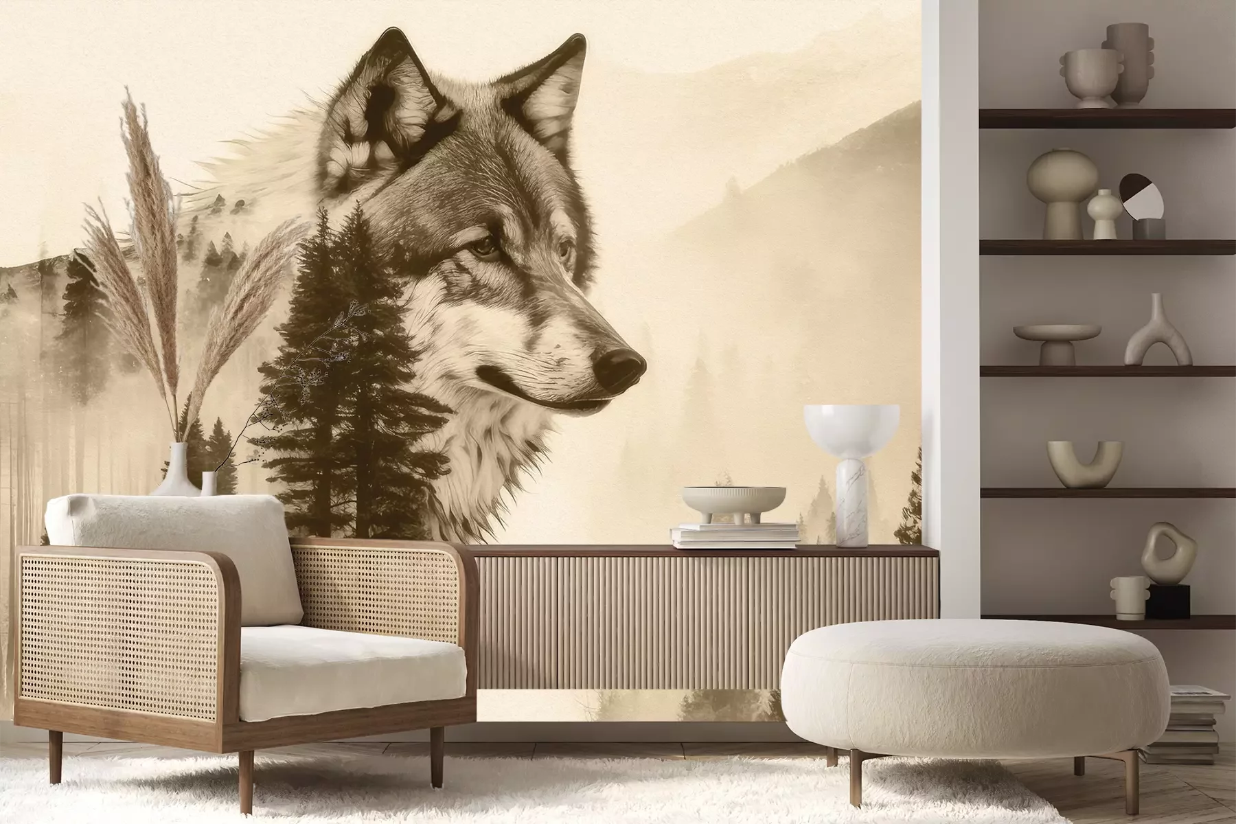 Het materiaal Premium+ is een gestructureerd vinyl op vlies met een gewicht van 255 g/m², dat kleine oneffenheden in de muur effectief camoufleert. De subtiele structuur van fijn zand geeft het oppervlak een exclusieve uitstraling, terwijl de halfmatte afwerking de diepte van de kleuren benadrukt. Het materiaal is dampdoorlatend, waardoor het ook in de keuken en badkamer kan worden gebruikt. De maximale breedte van één baan bedraagt 100 cm – bij grotere afmetingen wordt het fotobehang in meerdere gelijke banen verdeeld. De lijm wordt direct op de muur aangebracht en het behang wordt rand-aan-rand geplakt, wat zorgt voor een esthetisch resultaat zonder zichtbare naden. Het oppervlak kan gemakkelijk worden schoongemaakt door het voorzichtig af te nemen met een vochtige doek.