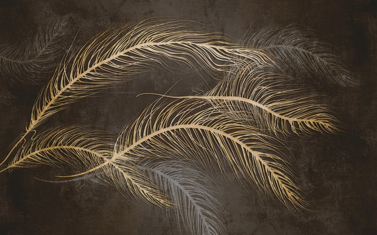 Fotobehang: Abstracte 3D gouden veren op een donkere achtergrond
