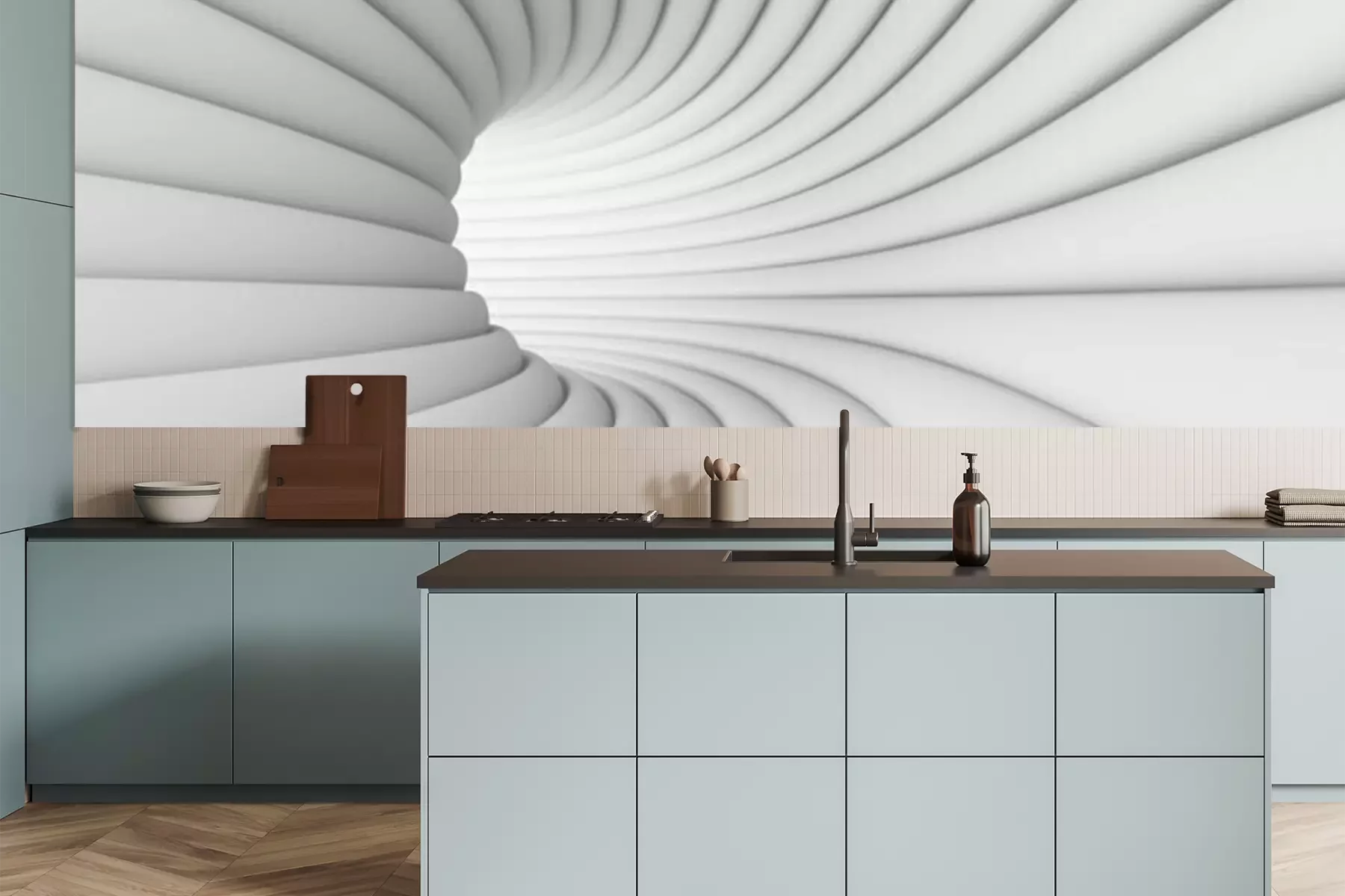 Futuristische witte tunnel met 3D-illusieProbleemloze bezorging verzorgd door vertrouwde vervoerders